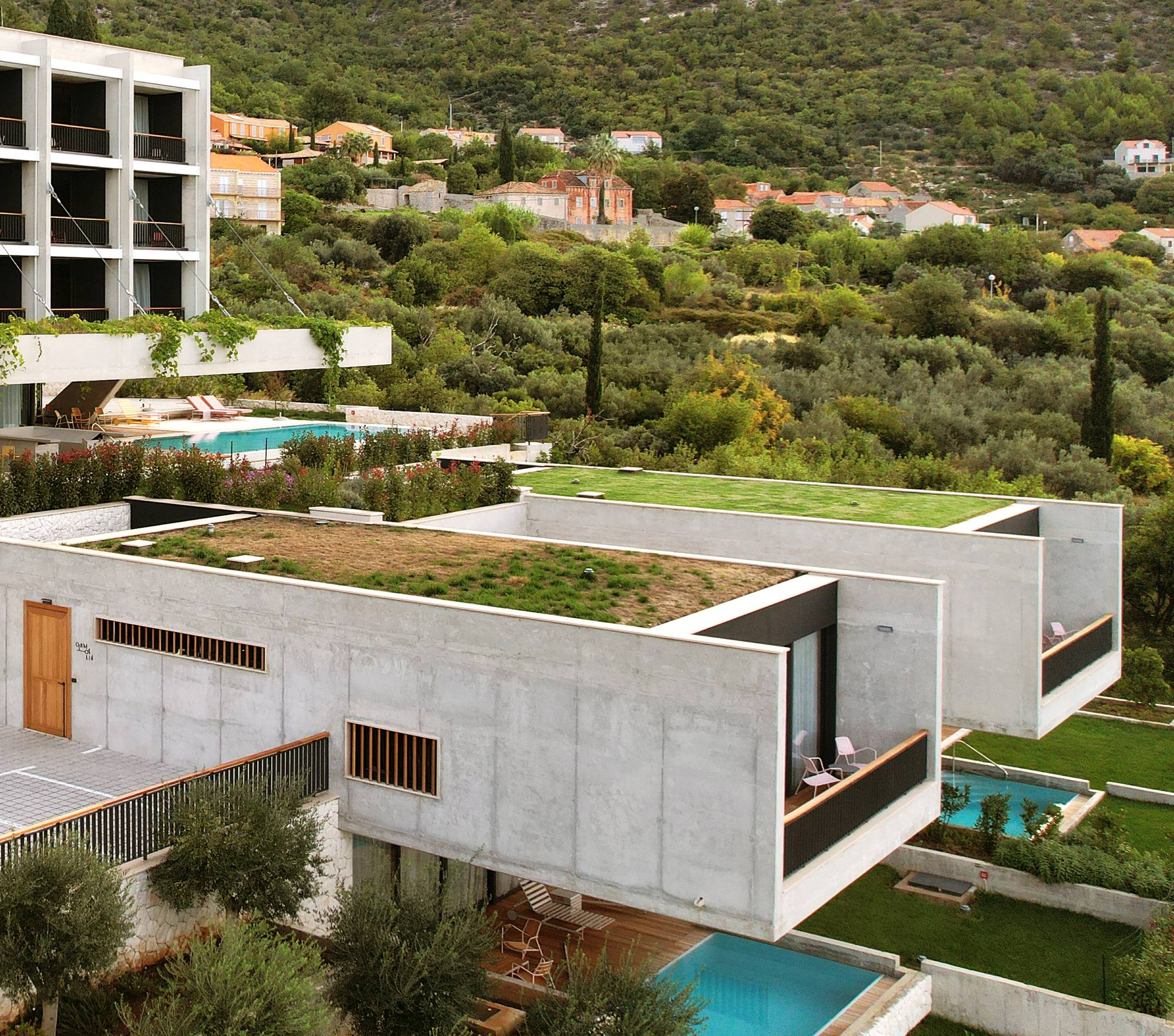 Sirova obrada betona u spoljašnjosti objekta postavljena je kao protivteža mekim i toplim drvenim oblogama u unutrašnjosti. Dizajn hotela Osmoliš, koji je izveden 2022. godine u Brsečinama kod Dubrovnika prema…
