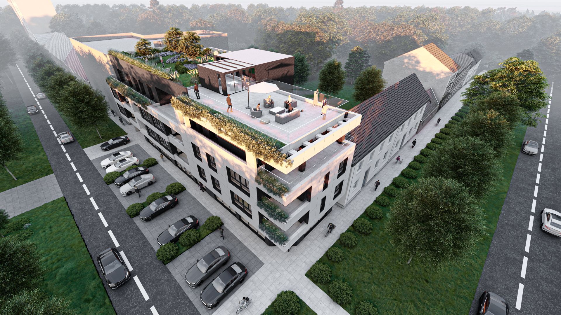 Stambena zgrada je oblikovana prema savremenim modelima stambene arhitekture. Dodatnu vrednost ovoj stambenoj zajednici daje i planirana krovna terasa, koju čine zeleni krov (oko 50% krova) i prohodni deo krova namenjen za aktivnosti na otvorenom.
