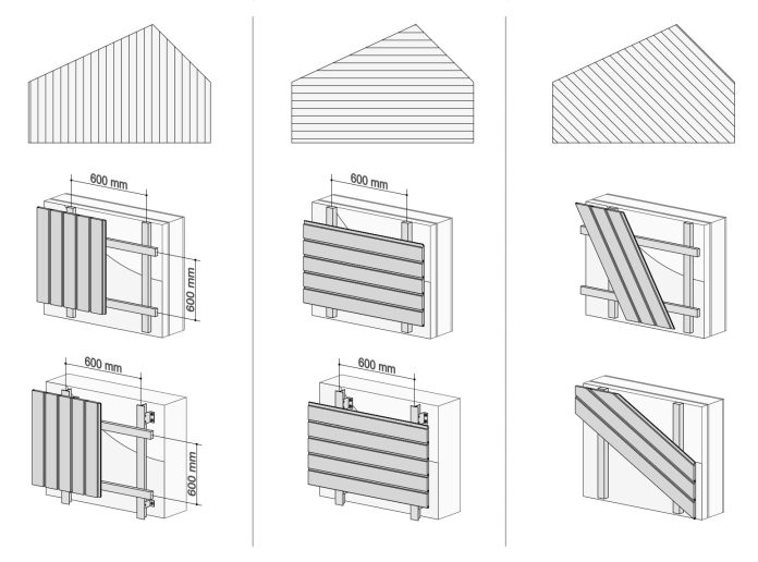 Ukoliko se letvice postavljaju vertikalno, što je najčešći slučaj, potrebna je i horizontalna i vertikalna potkonstrukcija koja se postavlja na razmaku od 60 cm. Na fasadu se prvo postavljaju vertikalni nosači a zatim horizontalni na koji se pričvršćuje fasada. Ukoliko se pak, fasada postavlja horizontalno, potrebni su samo vertikalni nosači na razmaku od maksimalno 60 cm.