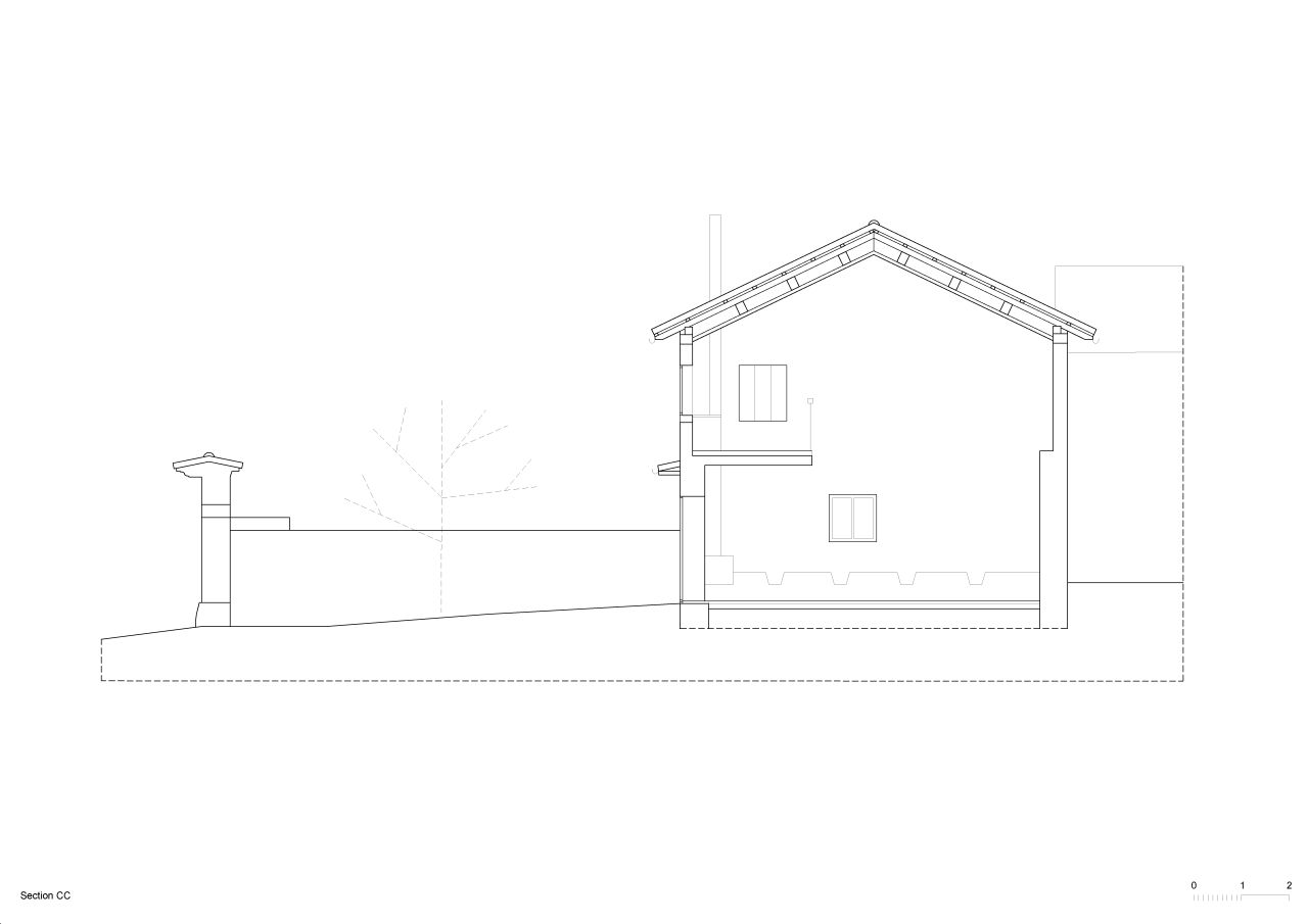 Unutrašnji prostori kuće zadržavaju izraženu materijalnost originalne strukture. Kameni zidovi ostavljeni su vidljivim, bez pokušaja da se prikriju tragovi vremena.