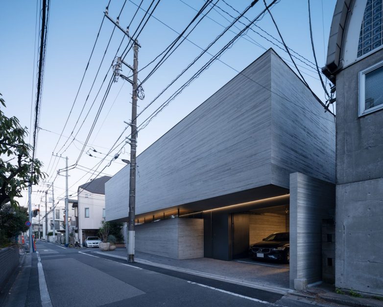 Unutar dva betonska volumena odvojena staklom smešteni su fleksibilni životni prostori koji pružaju mogućnost boravka na otvorenom i utočište od gradske vreve.