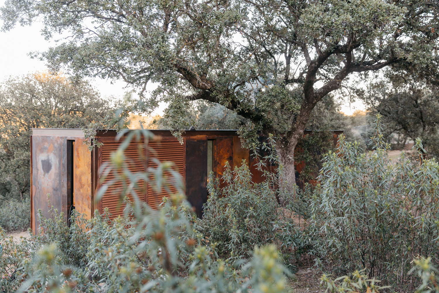 Pored ogromne staklene fasade koja se može otvoriti na nekoliko mesta – što je bio zahtev vlasnika – kuća je umotana u korten čelik, što joj daje prepoznatljiv zarđali izgled, koji će se usled meteoroloških uticaja menjati tokom vremena, piše New Atlas.