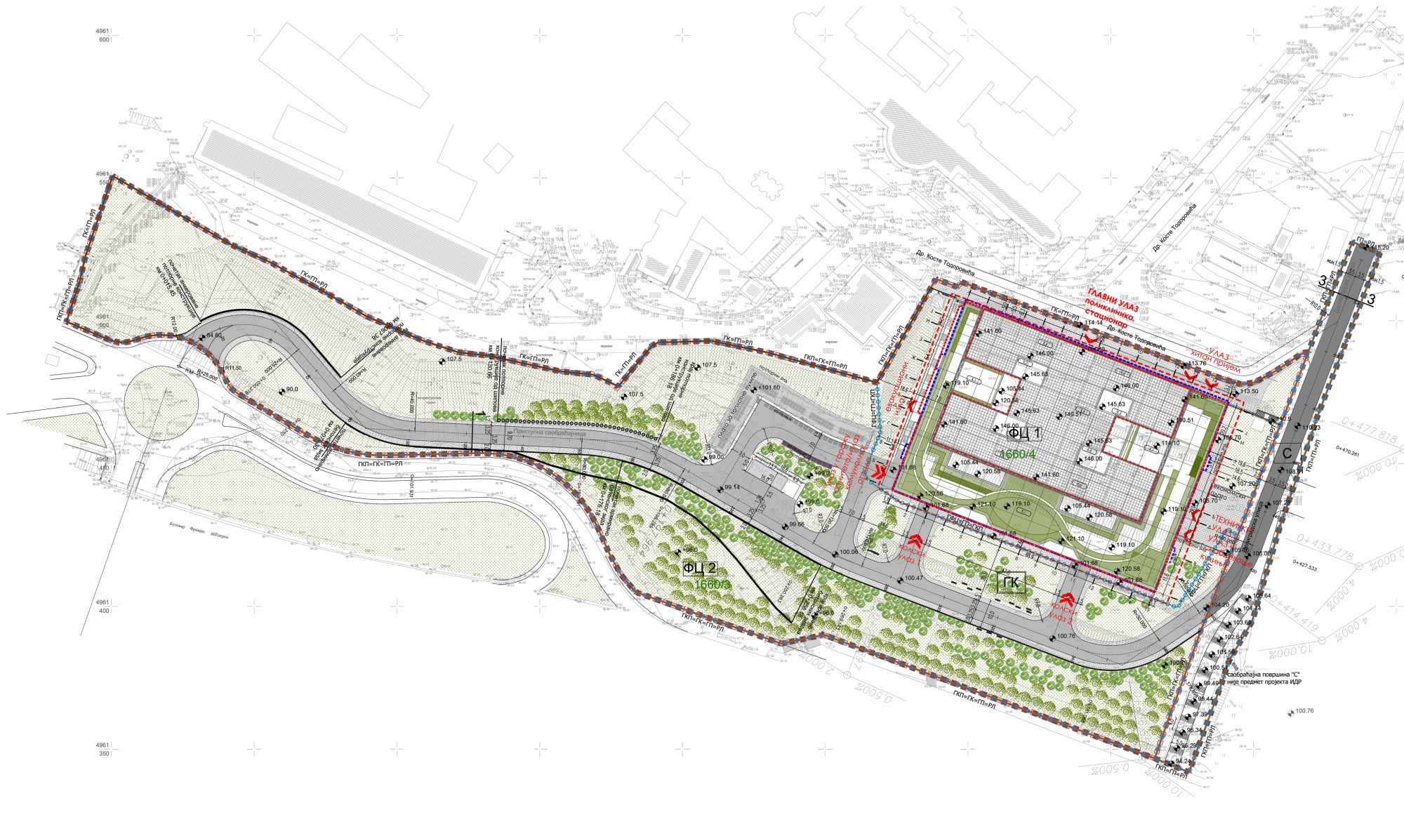 Saobraćajni pristup za korisnike i zaposlene planiran je preko planirane pristupne saobraćajnice i Deligradske ulice. Ulazi u podzemnu garažu ostvareni su sa pristupne saobraćajnice na etaži Po-1.