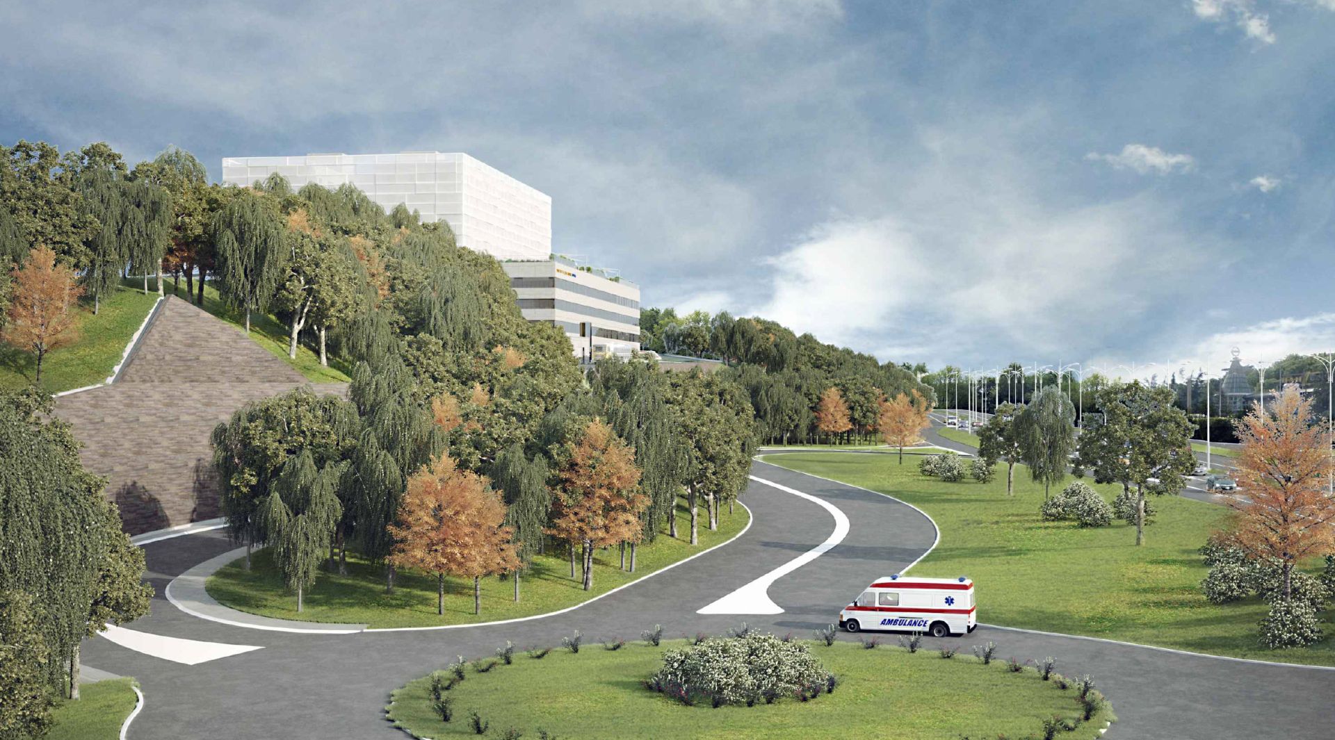 Glavni pešački pristup objektu planiran je iz pravca kompleksa Kliničkog centra Srbije preko ulice Dr Koste Todorovića, saobraćajni pristup kolima hitne pomoći planiran je iz pravca Kliničkog centra iz ulice Dr Koste Todorovića i sa auto-puta preko planirane pristupne saobraćajnice.