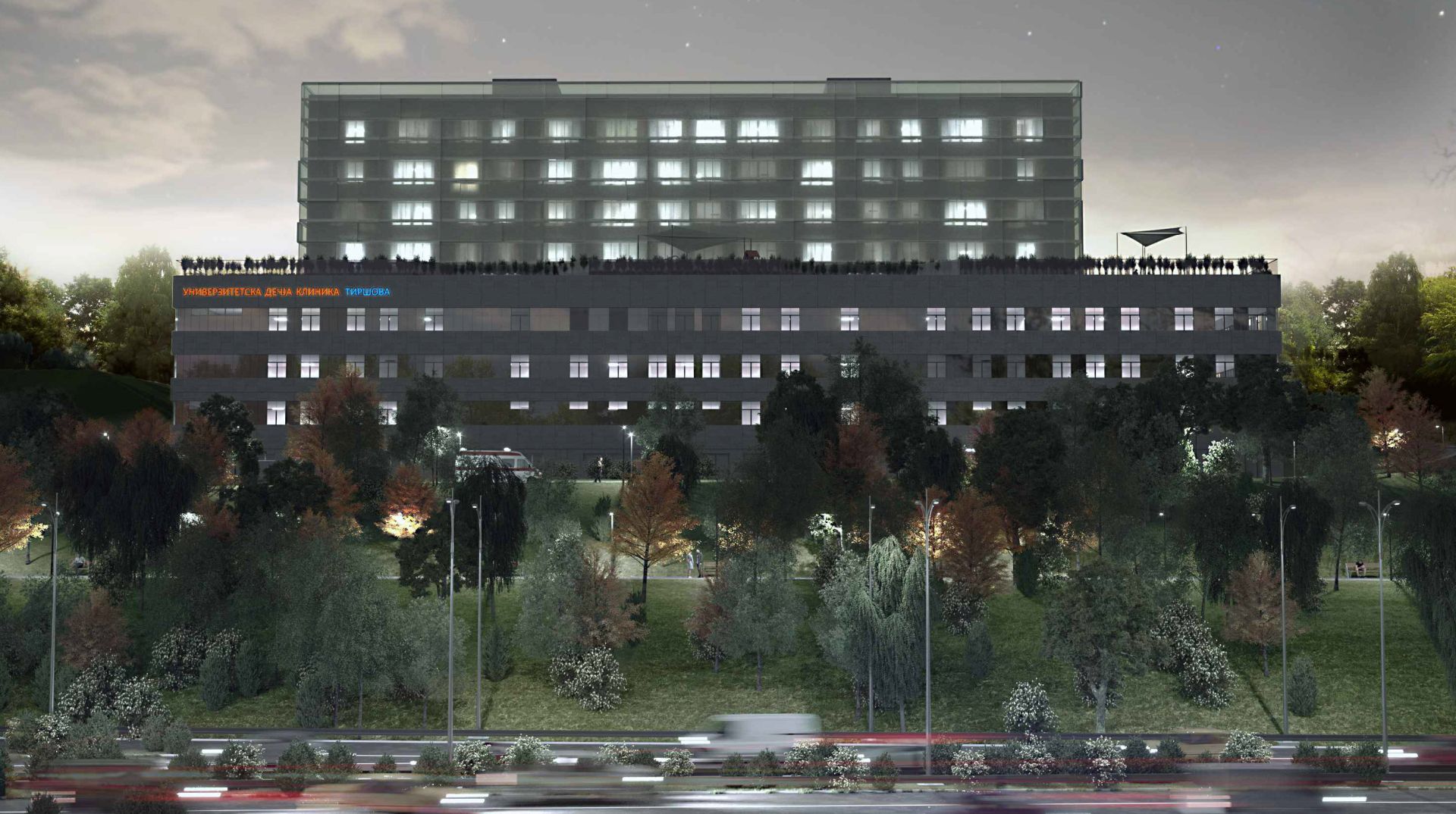Idejnim rešenjem planira se slobodnostojeći objekat dečje bolnice spratnosti 3Po+2Su+Pr+5, ukupne bruto površine objekta od 61.924 m2 , od čega je 21.078 m2 u okviru tri podzemna garažna nivoa, 14.054 m2 dve suterenske etaže i 26.792 m2 nadzemne etaže. Ukupna neto površina objekta sa garažnim prostorom iznosi oko 54.083 m2.