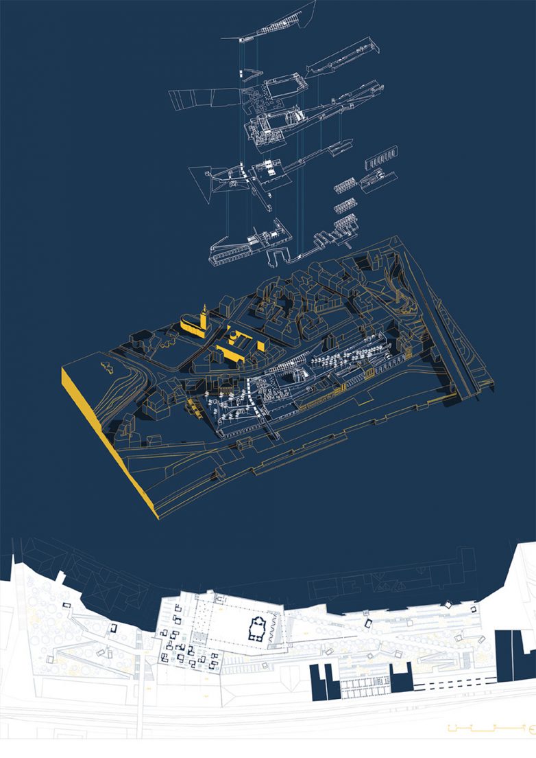 Kaskadirani platoi – javne terase, raznolike visine objekata, javna stepeništa orjentisana ka reci samo su neki od mehanizama u kojima se stvara vizuelna veza sa rekom Savom ali i kontekstualna veza sa idejom o Terazijskoj terasi. Na ovom području detektujemo najrazličitije korisnike, društvene grupe i u ovom projektu pokušala sam da afirmišem zajedničku saradnju ali i da stvorim uslove za život u takvoj heterogenoj zajednici. Projektovala sam tri tipa stanovanja i to : kule koje imaju najviše privatnosti i najatraktivniji pogled, urbane vile koje imaju kontakt sa zemljom i pripadajućim platoom, ali i male jedinice za iznajmljivanje i povremeno korišćenje koje se nalaze u zelenim atrijum i sadrže najrazličitije zajedničke sadržaje. Javni prostori su takođe različiti – postoje platoi koji su javni, na kojima su kafići, zelenilo, parkovi, i poluamfitiatralno stepenište koje je takođe javno i predstavlja mesto okupljanja. Pored toga postoje i zeleni atrijumi, odnosno privatna dvorišta u kojima borave korisnici sva tri tipa stanovanja, predstavljaju izolovane zelene oaze u samom centru gradske matrice. Sva tri tipa stanovanja ima direktnu vezu sa svakim tipom javnog prostora.