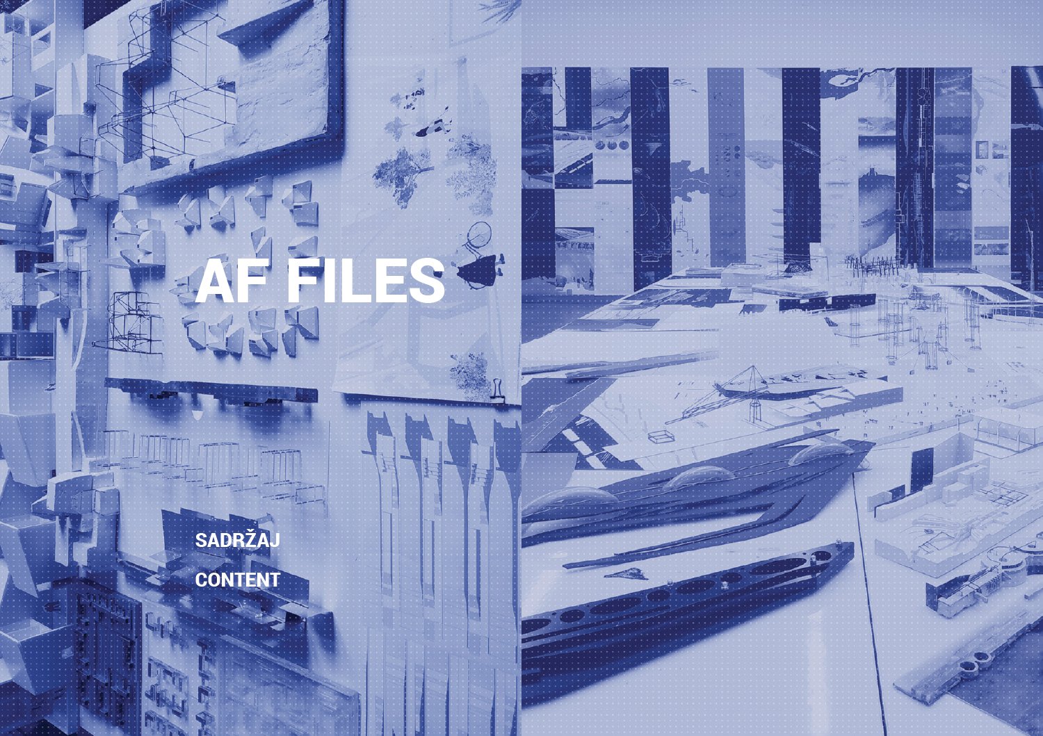 Publikacija AF Files rezultat je inicijativa pokrenute u okviru Centra za istraživačku delatnost pri Arhitektonskom fakultetu u Beogradu. Publikacija je nastala sa namerom da bude jedan od načina promocije i prezentacije studentskih radova na svim nivoima studija i studijskih programa. Kao takav, ova edicija osmišljena je kao baza dobrih praksi Fakulteta, ali i kanal praćenja razvoja studijskih programa i aktuelnih tema u fakultetskoj nastavi.