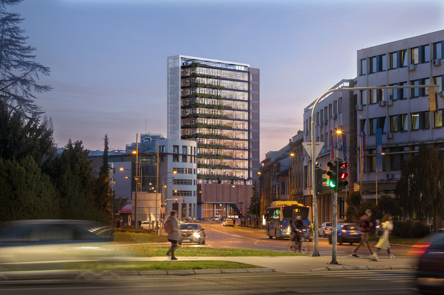 Posle nekoliko objavljenih rešenja, Airport city je zvanično dobio svog pobednika. Obučena u staklenu transparentnu fasadu ova sedamnaestospratnica predstavlja svojevrsnog frontmena u već izgrađenoj kompoziciji nižih poslovnih objekata.
