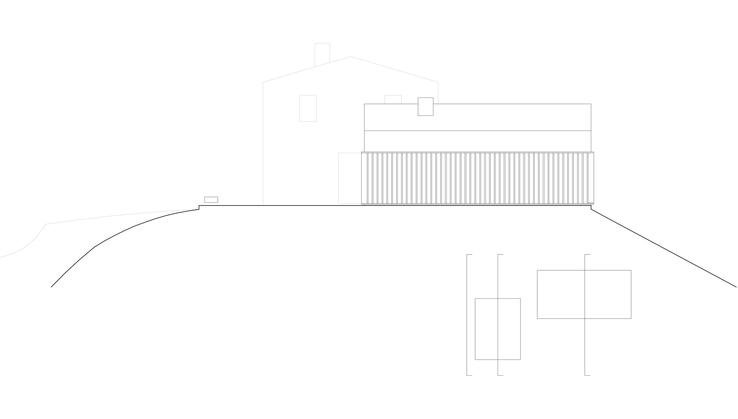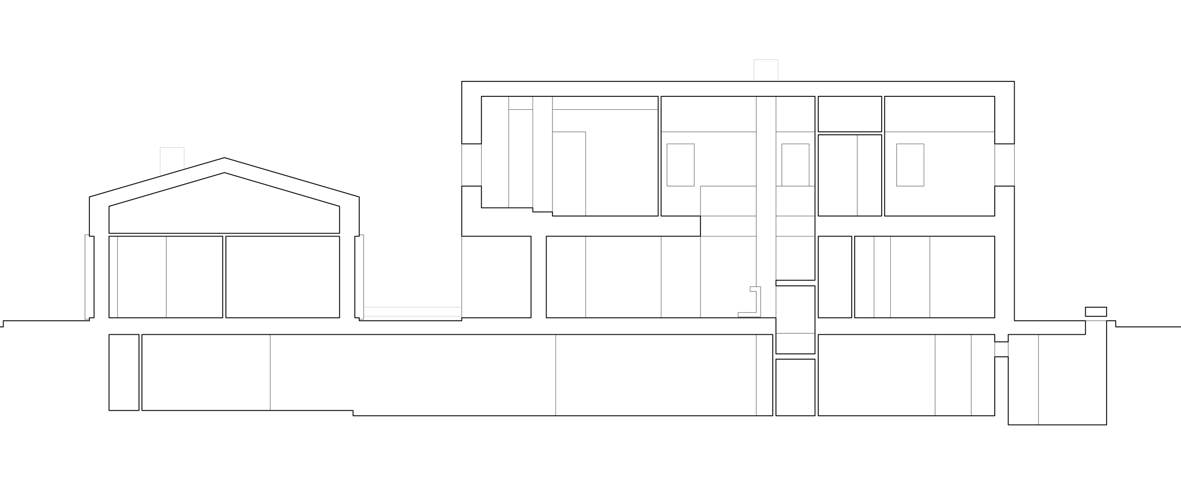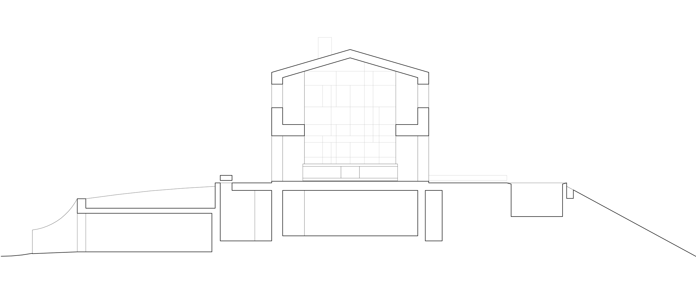 U prizemlju nove kuće organizovan je prostor otvorenog plana s velikom kuhinjom, trpezarijom i dnevnim boravkom. Veliki rasponi dobijeni su korišćeni armiranobetonskog skeleta koji nose celu strukturu na tri nivoa: podrum, prizemlje i sprat.