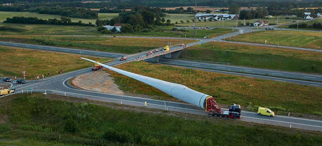 Širina lopatice je 4,2 metra što odgovara uslovima za drumski transport. Lopatice su u danskom gradu Funen utovarene na kamion i odvežene do luke u Esbjergu. Tamo su prebačene na specijalnu baržu koja je teret prevezla do škotske obale – tačno do mesta za montažu.