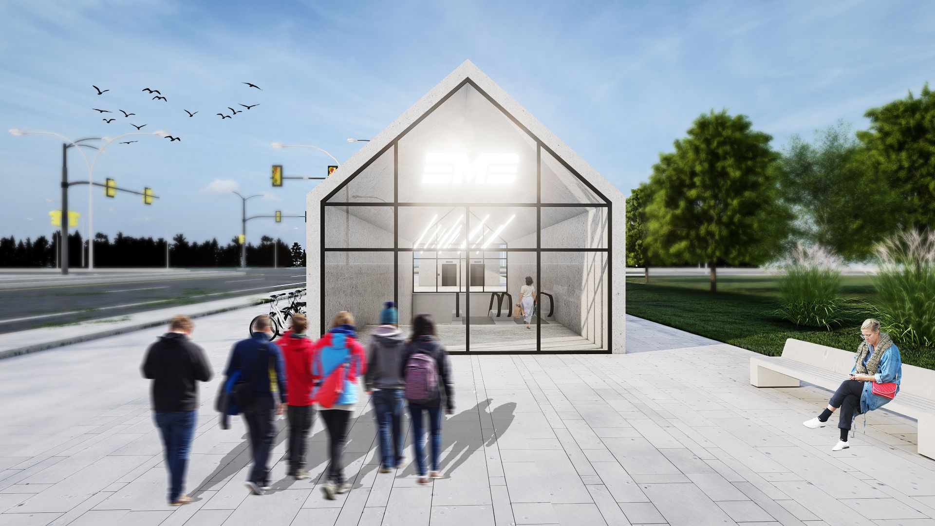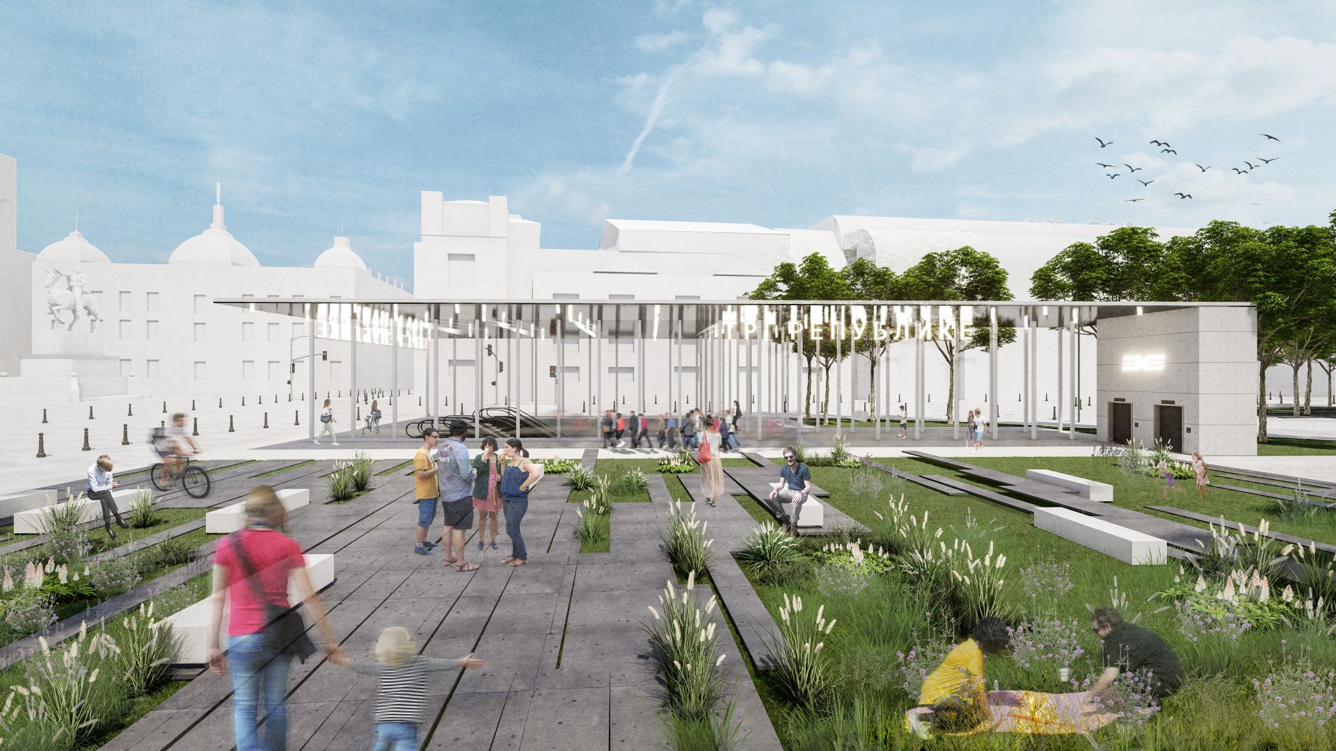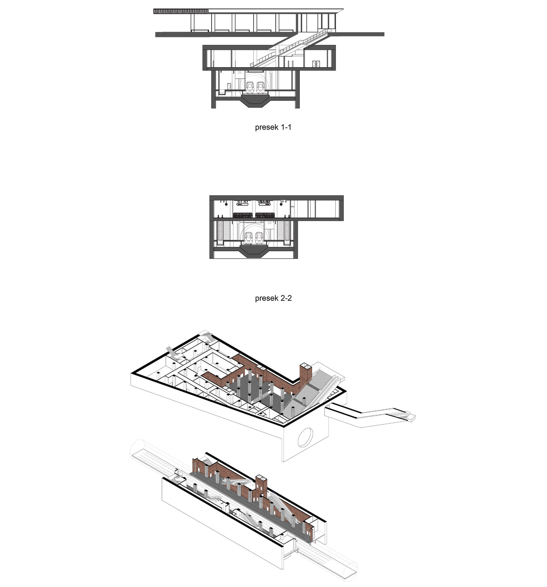 Trećenagrađeni projekat na konkursu za idejno arhitektonsko rešenje i dizajn stanica beogradskog metroa potpisuju Sara Miladinović, d.i.a., Dušan Munćan, d.i.a., Anđela Radovanović, d.i.a., Ilija Demenesku, d.i.a. i Lidija Grozdanić, d.i.a.