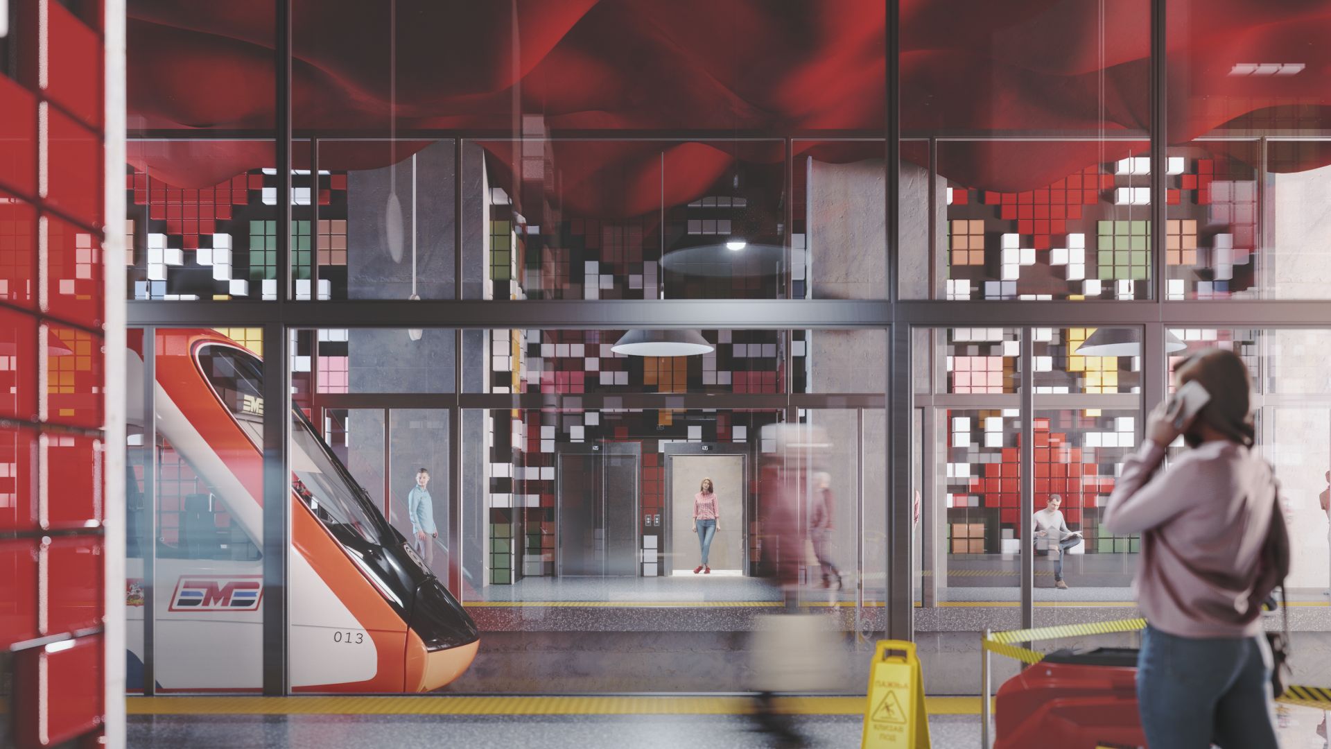 “Kombinacijom ovih elemenata dobili smo pattern koji predstavlja brending metroa, i predstavlja jasni vizuelni identitet svih stanica”, napominju arhitekte.