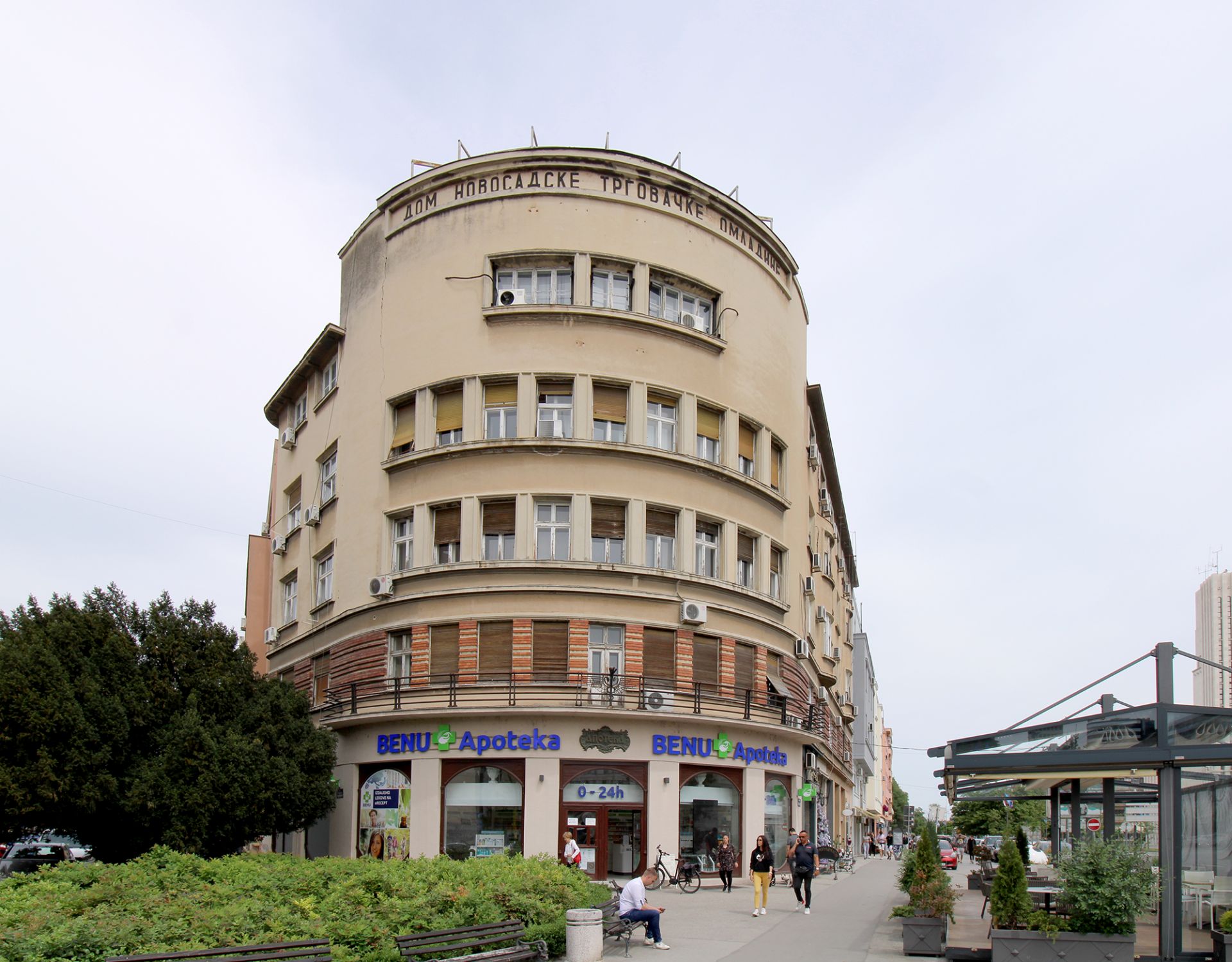 Malo dalje, na istoj strani Bulevara i na narednom raskršću, više od osamdeset godina postojano stoji usidrena Bela lađa u ravnici Panonske nizije, kako joj nadenuše ime zbog beline bračkog kamena u impozantnim razmerama i asocijativne brodske siluete u panorami i veduti grada. Zbog moćnog horizontalizma prozorskih otvora može se, sa punim pravom, reći da je Novi Sad krajem četvrte decenije minulog veka hrabrim koracima uplovio u modernističke vode.