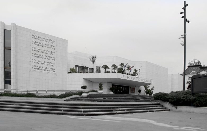Srpsko narodno pozorište nastavlja malopre pomenutu tradiciju plastične i dinamične igre pokrenutih fasadnih platana i raščlanjivanja svih punih masa, koju je uspostavila, kao novu vrednost, nekadašnja Miheličeva robna kuća “Stoteks”. Ne treba izgubiti iz vida činjenicu da je takva raščlanjena puna volumetrija, sa minimalnim brojem otvorenih površina, namenski projektovane nove pozorišne zgrade bila jasan rezultat prirode projektnog programa i tehničkih zahteva. U odnosu na pomenuti primer nekadašnje robne kuće “Stoteks”, raščlanjivanje volumetrije pozorišne zgrade prelilo se i na parterno rešenje ispred nje, dajući na taj način obrise artikulisanog i vešto promišljenog javnog prostora, kao sastavnog i ravnopravnog elementa arhitektonskog oblikovanja.