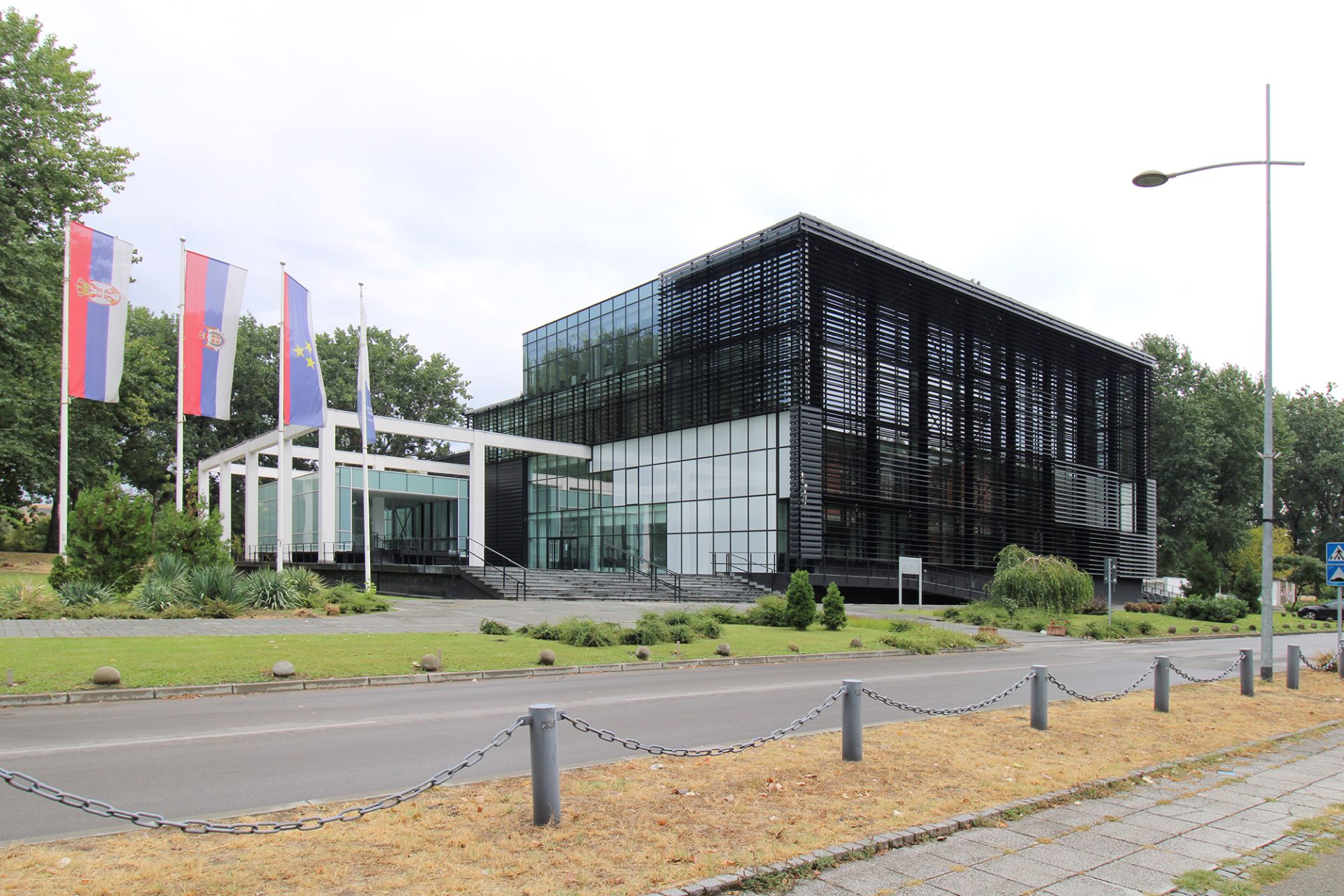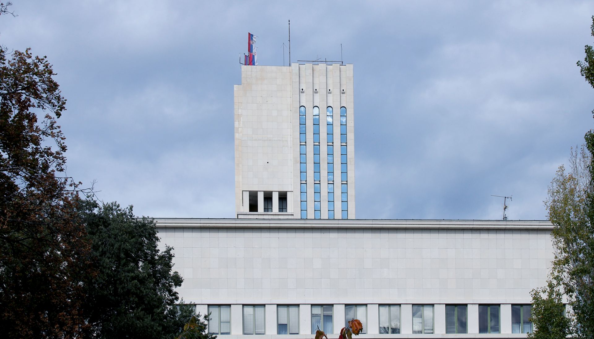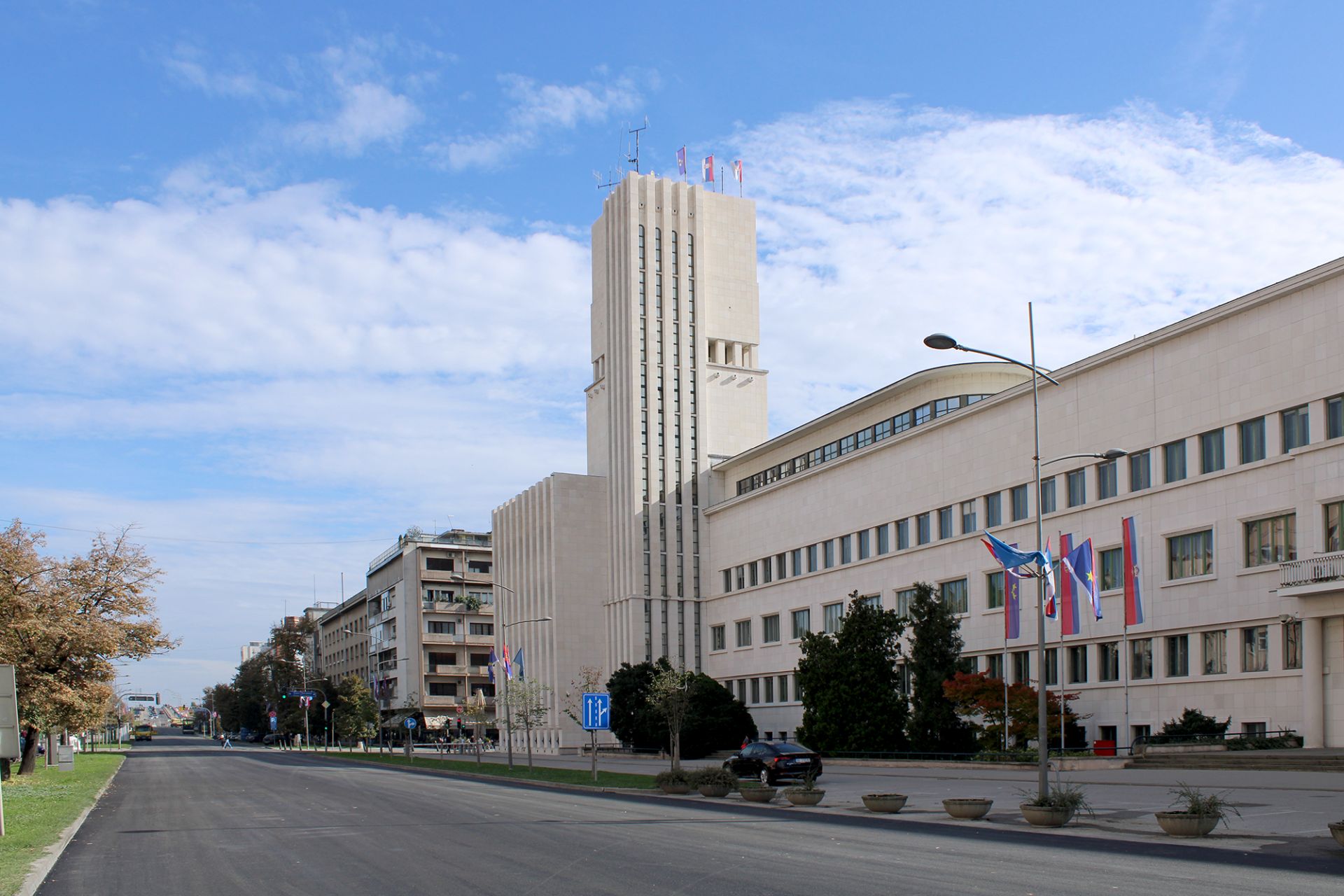 Iza moćnog horizontalizma prozorskih otvora na Bulevaru nalazi se namenski projektovana Većnica sa Banskim dvorom, u kojoj je danas smeštena Skupština Autonomne pokrajine Vojvodine.