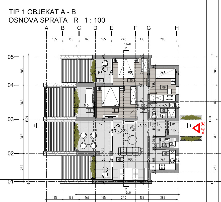 Planiran na lokaciji koju karakteriše izrazito strm teren, ovaj mini-kompleks oblikovan je prema zahtevu klijenta da se dobiju komforni apartmani različitih struktura, što mirniji, intimniji i nezavisniji jedni od drugih, uz iskorišćenje raspoloživih urbanističkih parametara.