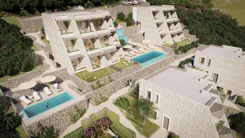 Idejno rešenje za arhitektonski ansambl sastavljen od pet turističkih apartmanskih objekata u Reževićima u Crnoj Gori plod je ovogodišnje saradnje studija Arhinet iz Budve i arhitektonske prakse Atelje Vladislav Lalicki iz Beograda.
