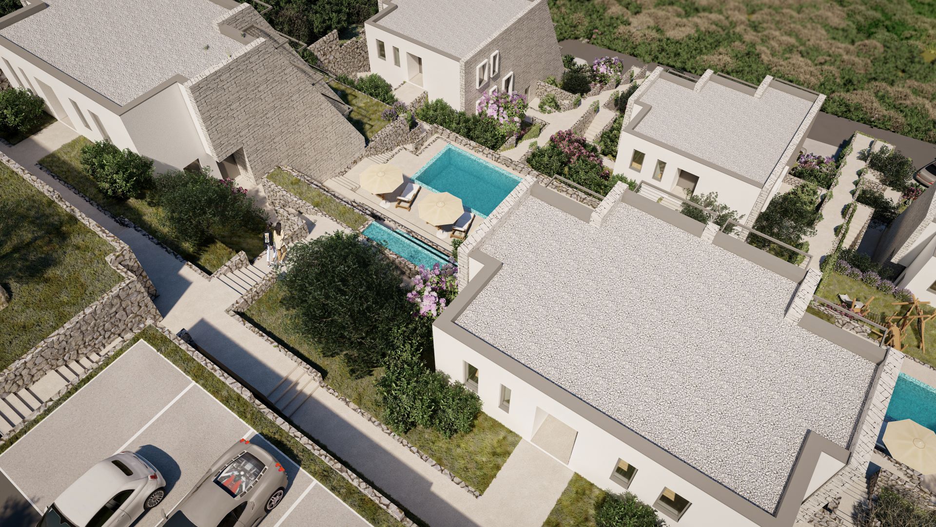 Specifičnost ovih kuća jeste njihova terasasta tipologija, odnosno činjenica da su sve tri etaže, na neki način, prizemne i prisno povezane s tlom. Istovremeno, one su postavljene tako da korisnici uživaju u neometanom pogledu i autentičnom prirodnom ambijentu.