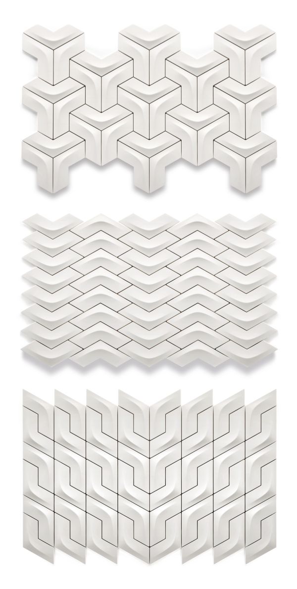 Pločice imaju jedinstvene 3D osobine zbog svojih ispupčenih površina u obliku luka ili trouglova pa je efekat na zidu potpuno neuobičajen.