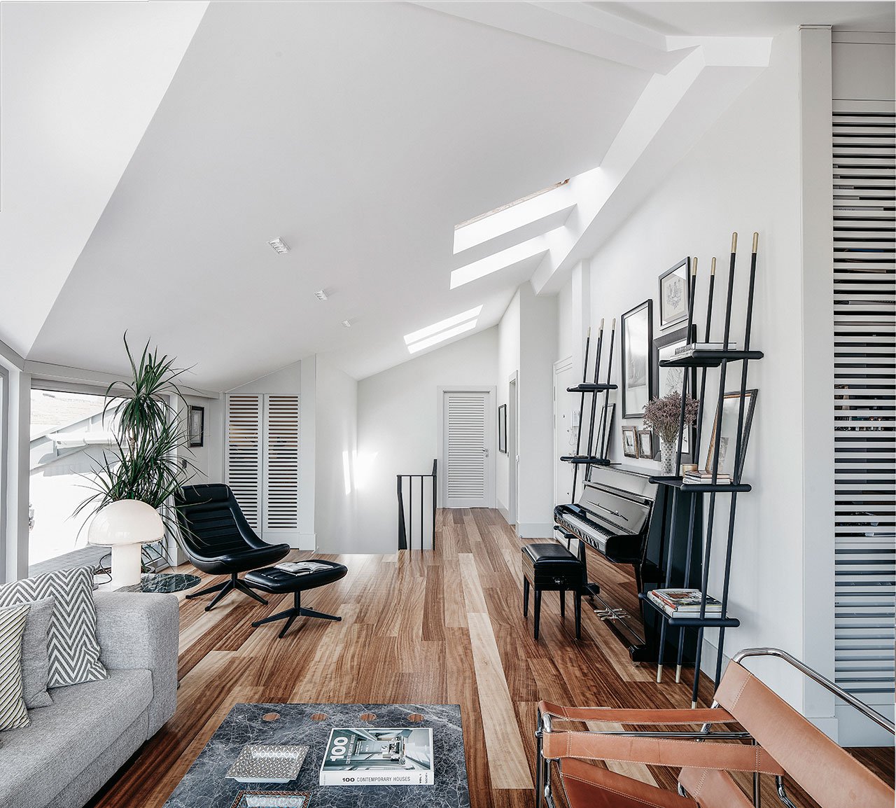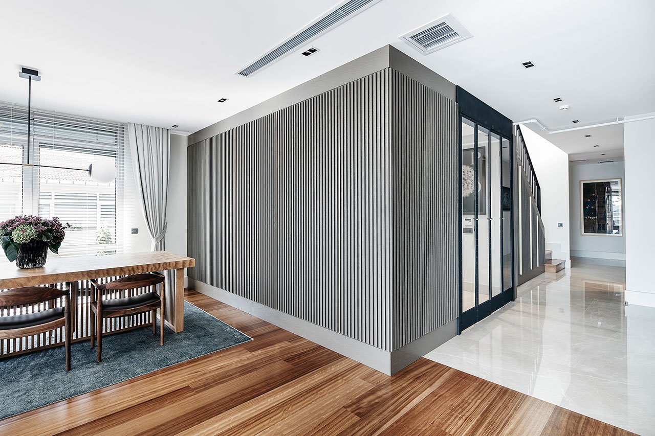 Svi parketi u ovom penthausu su od iroko drveta koji imaju elegantnu boju – nisu previše tamni a nisu ni previše svetli. Iroko drvo (Clorophora excelsa) koje se retko koristi kod nas zbog dostupnosti, potiče iz Afrike, odlikuje ga ekstremna tvrdoća a pritom mu i boja varira na svetlu.