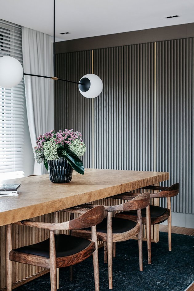 Enterijer ovog penthausa je zapravo minimalistički ali je obogaćen raskošnim materijalima poput mesinga, mermera i detalja rađenih po meri.