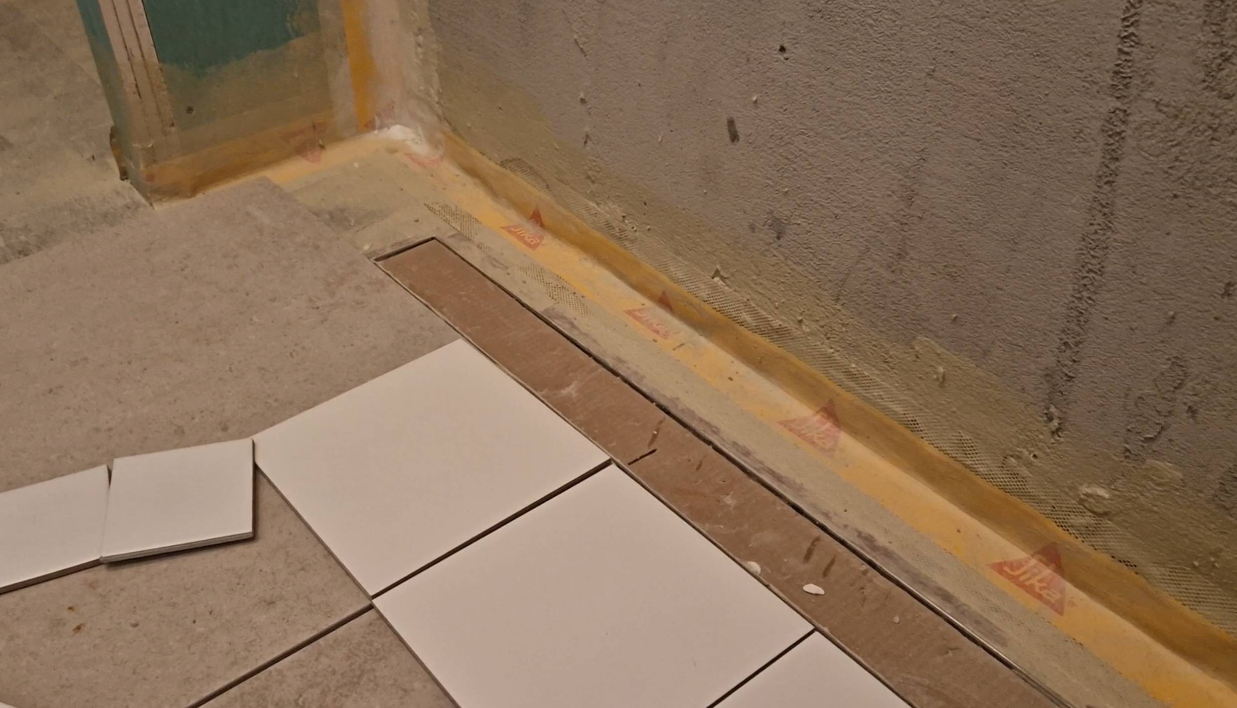 Da je zid bio malterisan, onda bi se tuš kanalica fiksirala. Međutim, s obzirom na to da je renoviranje u pitanju i da je zidna keramika obijena a samim tim i malter, onda kanalica nije u potpunosti fiksirana dok keramičari ne urade tačnu poziciju zida. Kanalica će biti fiksirana tek kada se zid završi.