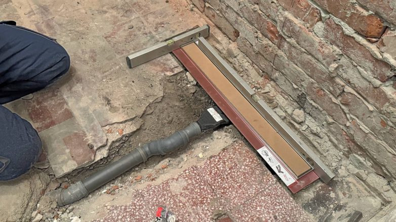 U našem primeru, ugrađivali smo tuš kanalicu TECE Drainline dužine 80 centimetara u koju se može ugraditi pločica kako bi se dobila jednoobrazna podna površina.