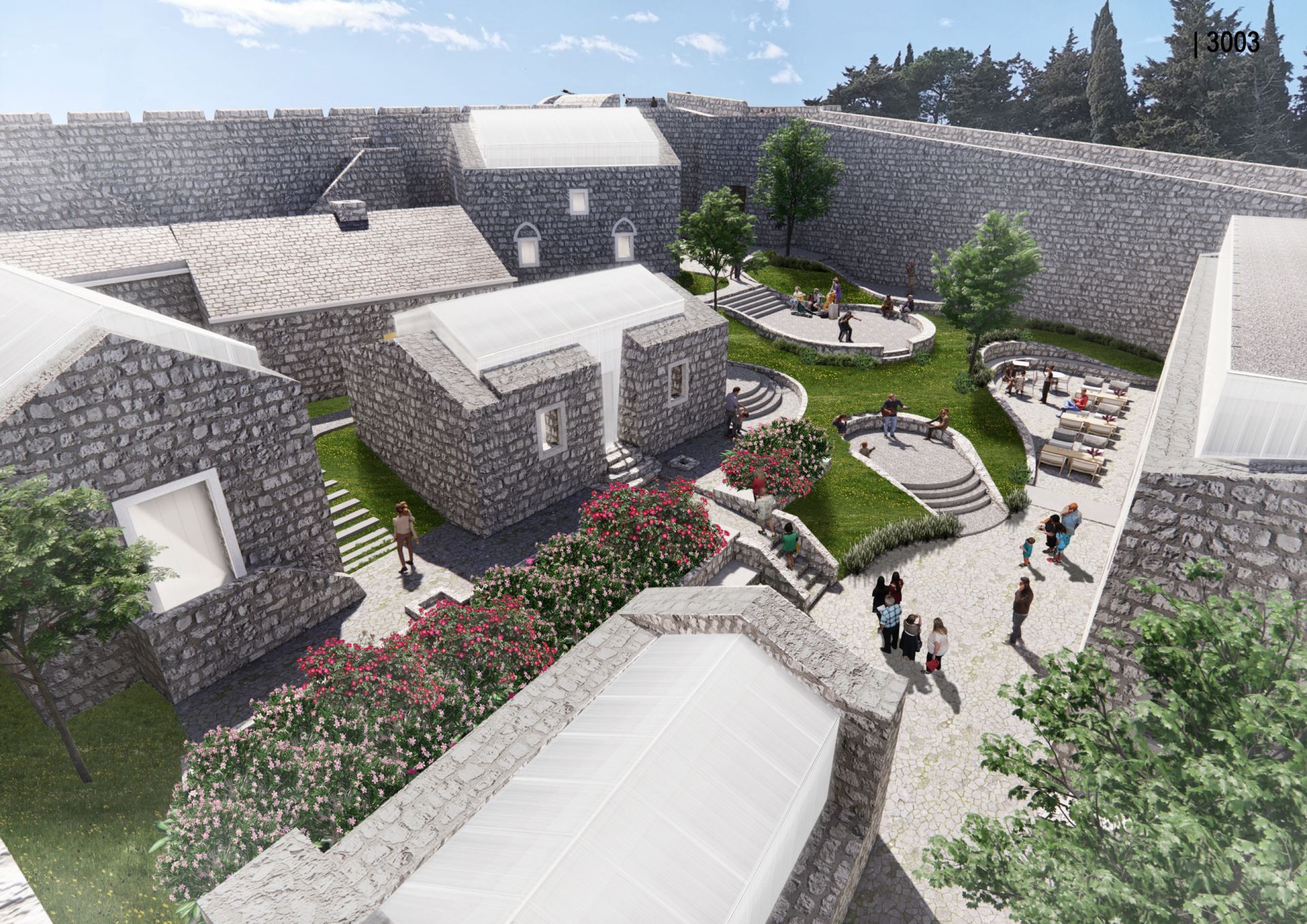 „Korišćenjem polikarbonata za dodavanje nedostajućih delova strukturama, pomažući im da povrate svoje prethodne oblike, svedoci smo važnog trenutka koji simbolizuje novi život. Tokom dana, bele strukture povezuju zgrade unutar tvrđave u jedinstvenu, neuništivu celinu”, navode iz Enforme i dodaju: