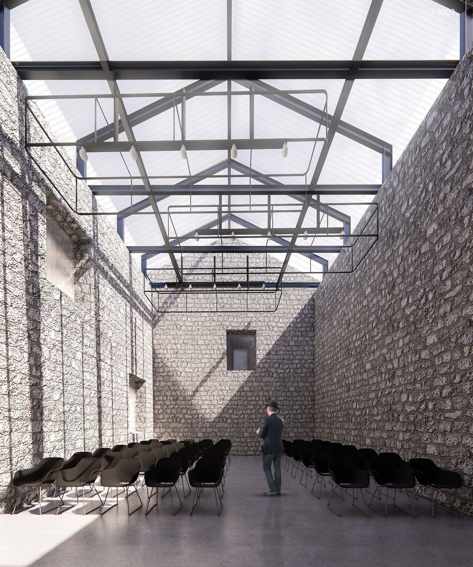 Predloženo rešenje može se okarakterisati kao savremena arhitektonska intervencija reverzibilnog karaktera, bez upotrebe betona.