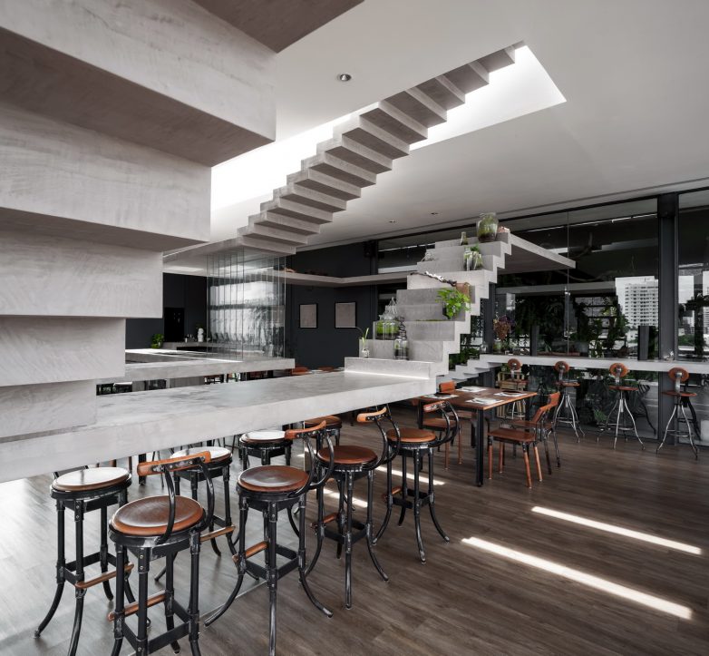 Stepenište u restoranu Nowhere ne služi samo za kretanje između različitih zona, već one imaju i funkciju stolova, sedišta i barskih površina.