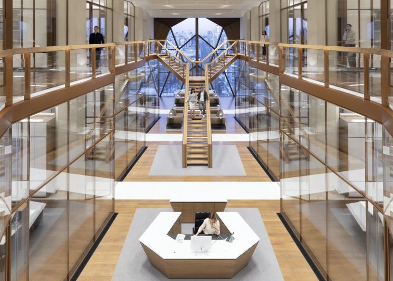 Inovativne modularne kancelarijske jedinice smeštene su u energetski efikasan objekat prve klase od 18.450 kvadrata. Fasada je naravno, inspirisana bakrom, kao i trouglastom formom koja simboliku izvodi iz hemijske strukture ovog plemenitog materijala, kažu iz Foster+Partners.