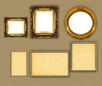 Ukoliko je tapeta dvobojna na vertikalne linije obratite pažnju da ivice rama imaju logičan raspored. t.j. da da bočne ivice prate sredinu ili krajeve linija na tepeti kao što je prikazano na slici (A). Takođe, važan je i međusobni odnos slika. Na primer: ukoliko su slike različitih dimenzija bar jedna ivica mora da isprati pravac drugog rama (B).