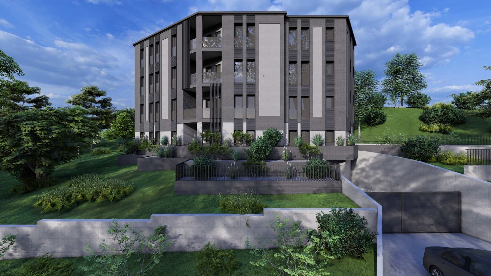 Kolski prilaz objektu je predviđen iz ulice Dragoslava Srejovića, odakle se pristupa garažama na nivoima Po1 i Po2. U okviru garažnog prostora obezbeđena su 22 parking mesta, od čega je jedno parking mesto predviđeno za lica sa invaliditetom.