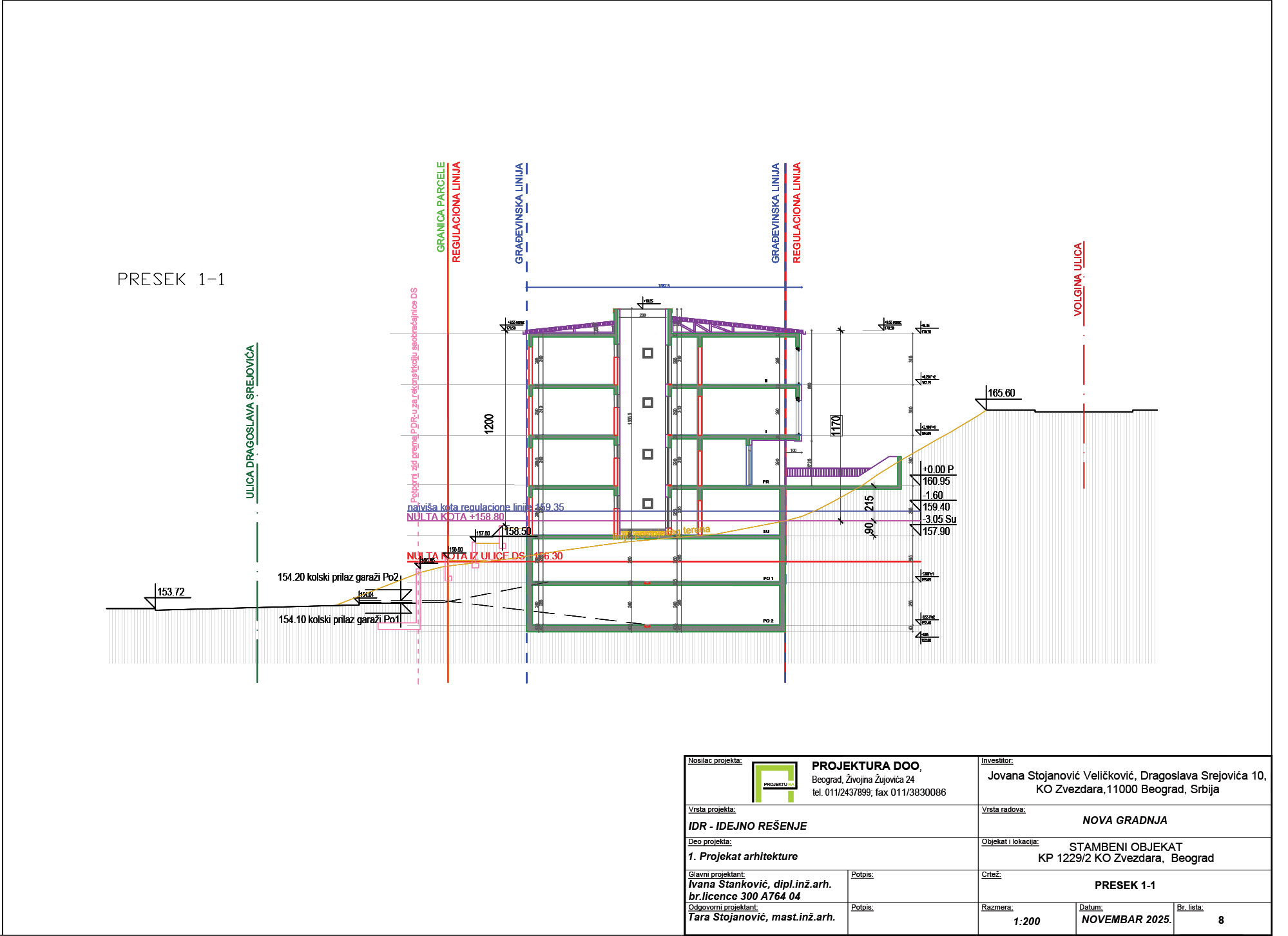 Objekat je slobodnostojeći, pozicioniran duž zapadne, južne i istočne granice parcele, širine i visine u skladu sa horizontalnom regulacijom, spratnosti Po2+Po1+Su+P+2, gde dve podrumske etaže imaju funkciju garaže, navodi se u projektu.