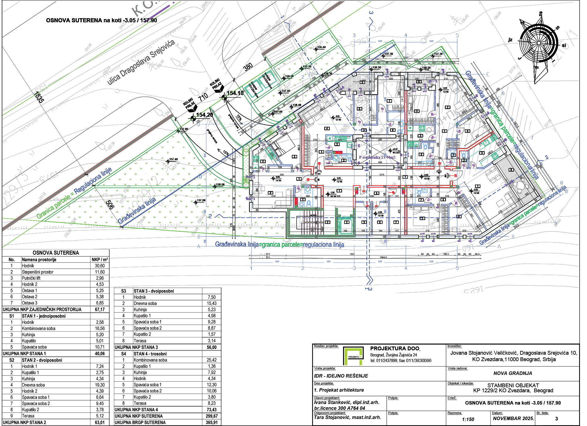 U stambenom objektu sa 17 stanova planirana je i podzemna garaža na dva nivoa, u kojoj su projektovana 22 parking mesta.