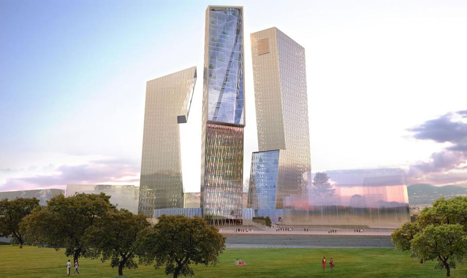 Najviša kula biće visine 220 metara a oblik tornjeva dobijen je razdvajanjem jednog monolitnog bloka na tri različita dela. Zbog toga su se pojavili uglovi na fasadi koji su u relaciji sa susednim objektom.