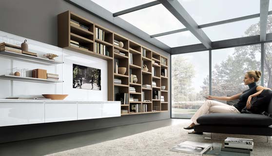Inovacije u konstrukciji omogućavaju da velika biblioteka na zidu deluje lagano i prozračno. Debele konstruktivne ploče su male težine i tako se mogu postaviti konzolno na zid.