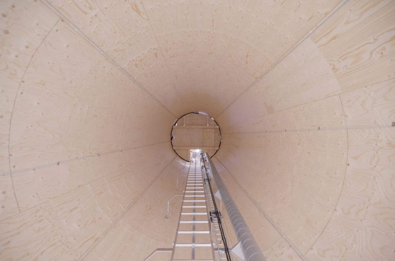Ovu vetroturbinu nosi 105 metara visok drveni stub