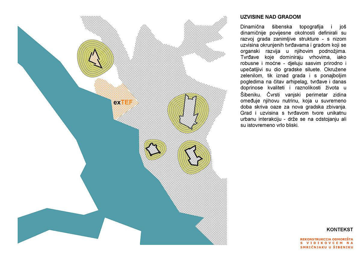 Prvonagrađeno rešenje izabrano je u sklopu projekta koje je Grad Šibenik sproveo u saradnji sa Arhitektonskim fakultetom u Zagrebu i Javnom ustanovom „Priroda“ Šibensko-kninske županije. Cilj projekta je valorizacija i uređenja prostora Smričnjak kao mesta od velikog kulturnog i istorijskog značaja. U formi malog pozivnog konkursa, idejna rešenja zatražena su od tri autorska tima: NFO, Arhitektonskog biroa Turato i tima MVA / Mikelić Vreš arhitekti.