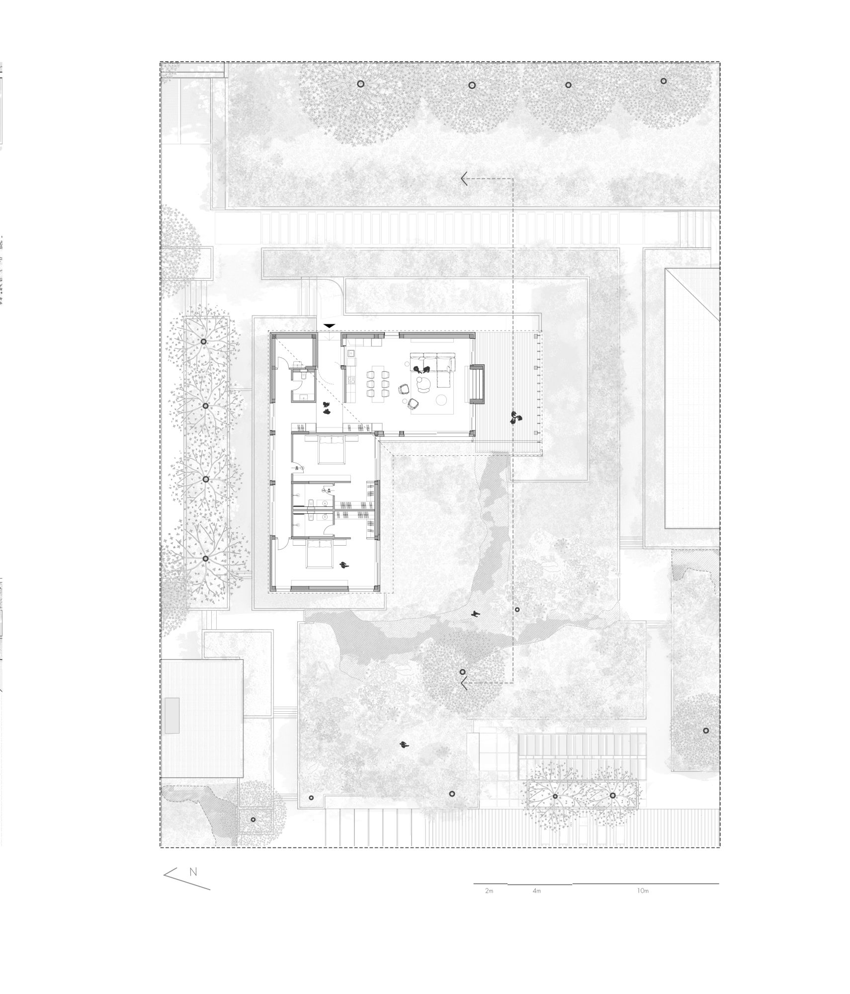 Autori arhitekture dodaju da je bazen najprivatnija zona među sadržajima, te se nalazi u najnižoj tački parcele zajedno sa pratećim paviljonom, objektom sa potpuno neuzurpiranim vizurama.