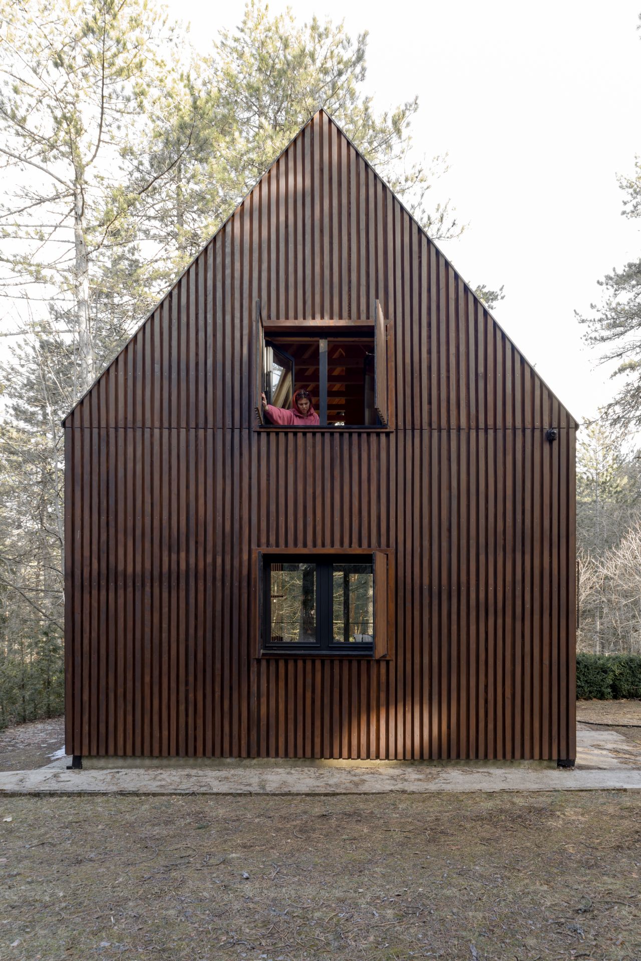 Projektovana 2022. godine u Nacionalnom Parku Tara od strane beogradskog studija KAI Architecture,  ova vikend kuća od 85 kvadrata od skora je deo izložbe 47. Salona arhitekture, koji se u Muzeju primenjenih umetnosti u Beogradu ove godine održava od 1. do 30. aprila.