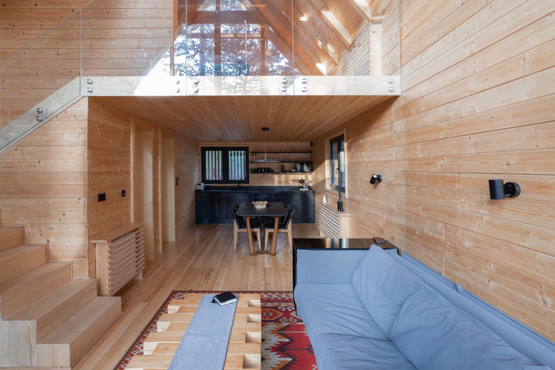 „Ovakav način organizacije prostora je oslobodio prizemlje i omogućio kreiranje fleksibilnog prostora za zajedničke aktivnosti. Galerija na kojoj se nalazi velika spavaća soba, pomoću staklene ograde i krovnih Velux prozora, ostaje u stalnoj komunikaciji sa ostatkom prostora kao i okolnom prirodom. Kako bi upotpunili odmor svakog korisnika, ispod kote nula, nalazi se sauna“ – navode iz studija.