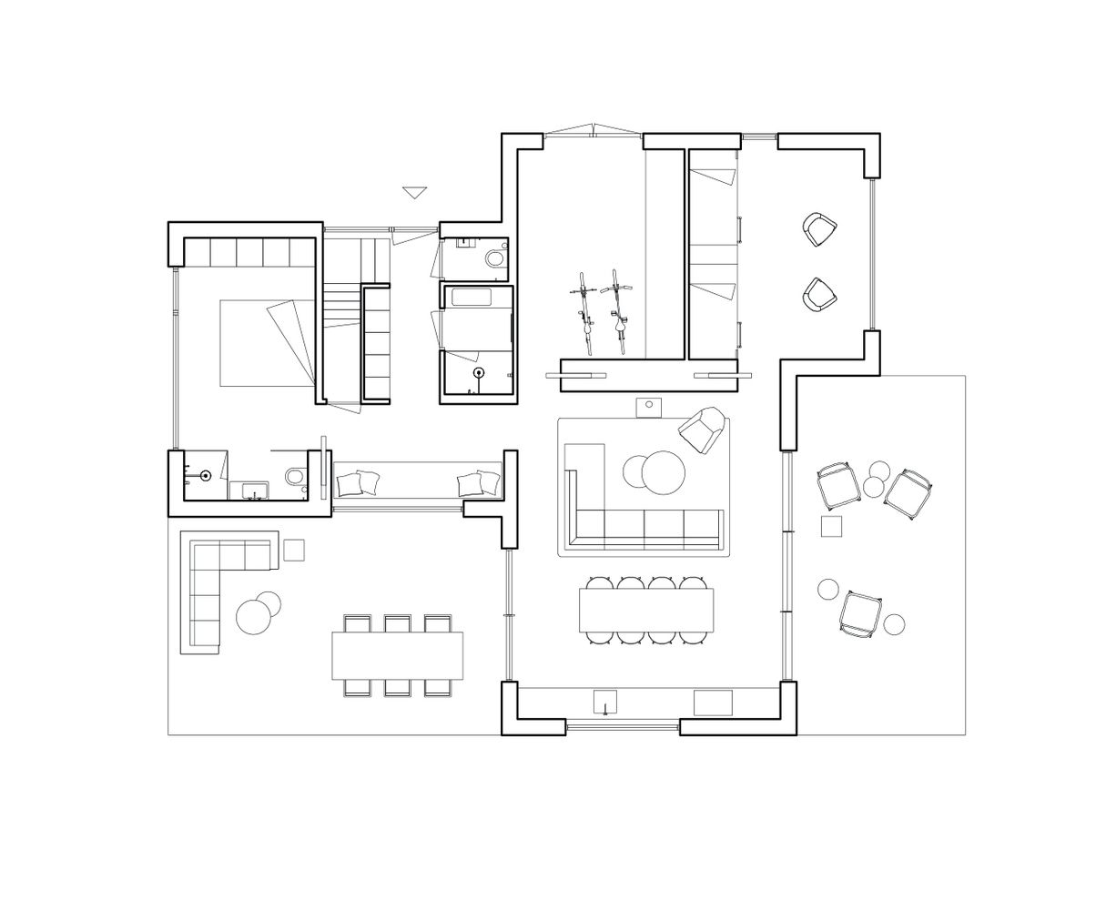 Ostvarena je jaka veza između unutrašnjosti i okoline, pa se prostori za sedenje na otvorenom suptilno nadovezuju na enterijer.