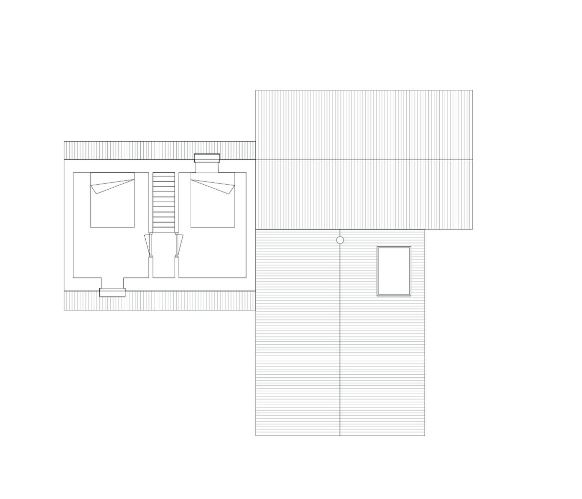 Osim spavaćih soba na prizemlju, na spratu se nalaze dve dodatne sobe, u kolima se zahvaljujući krovnim prozorima poče uživati u pogledu na okolne krošnje ali i zvezdano nebo.