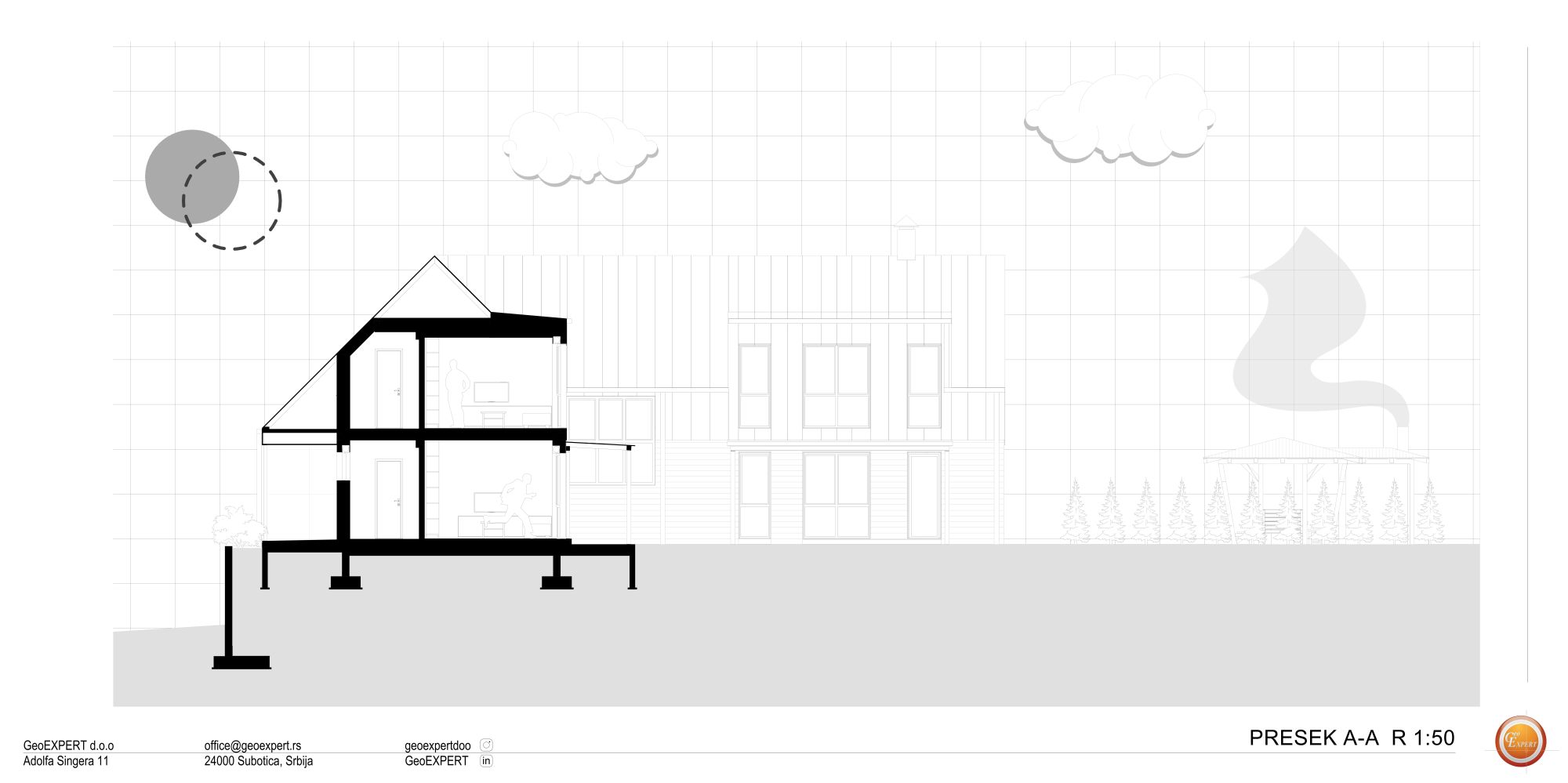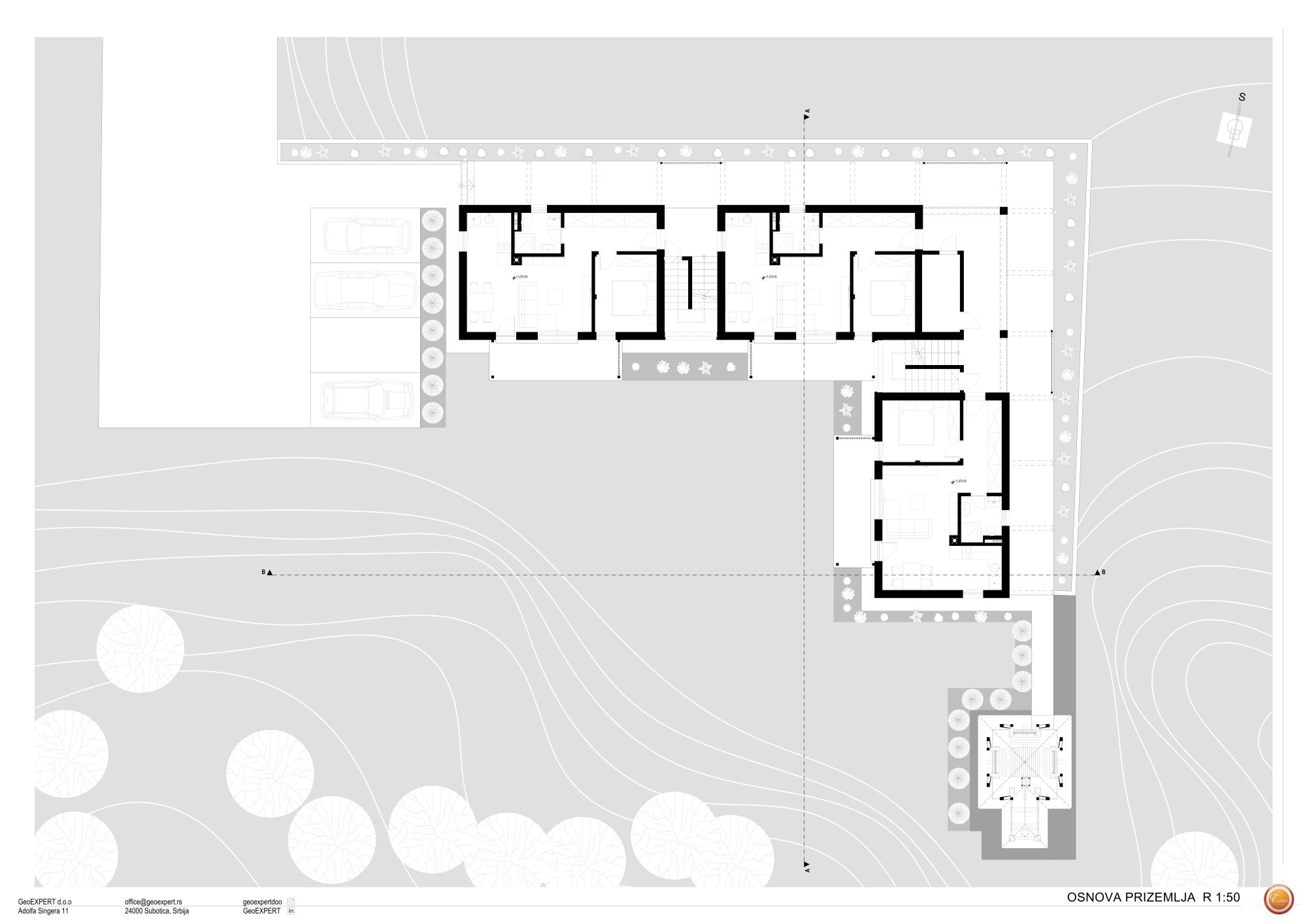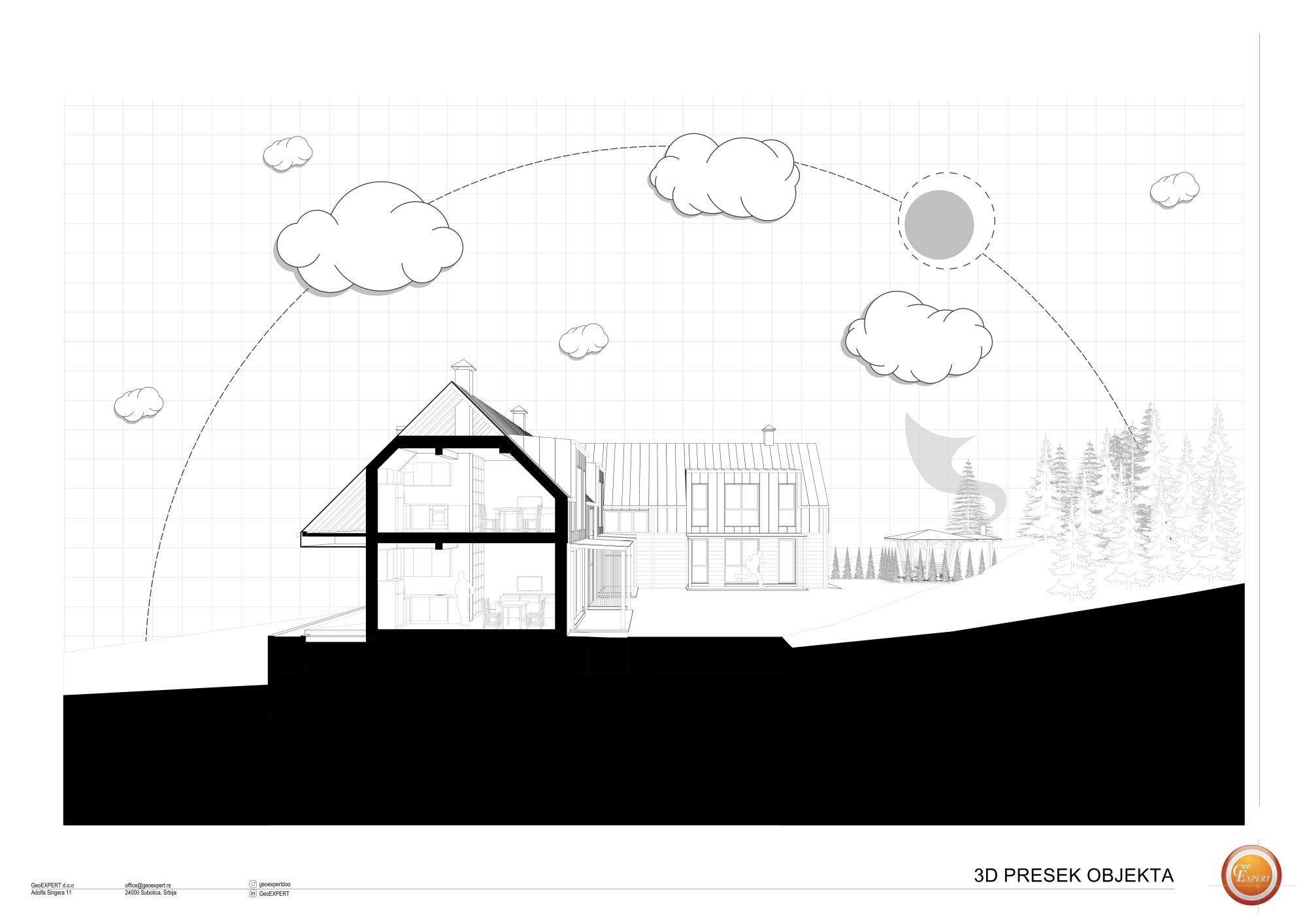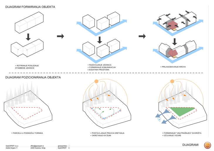 Projekat koji okuplja tri zasebne „kuće“ pod jednim krovom, a istovremeno ih otvara ka šumi i unutrašnjem dvorištu, investitorski je i izvođački poduhvat kompanije GeoEXPERT iz Subotice. Na projektu su učestvovali Željko Bajić, dipl. inž. građ., kao projektant konstrukcije i jedan od osnivača firme, i arhitektkinja Ljuboslava Častvenova, mia, iz Novog Sada, kao odgovorni projektant arhitekture.