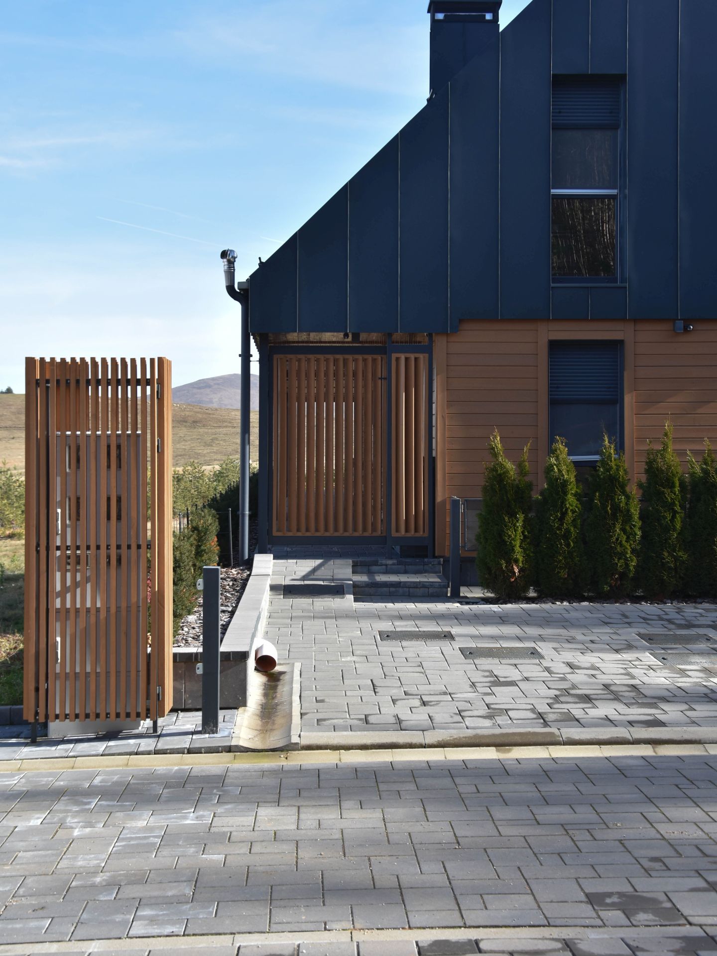 Za izradu krovne konstrukcije korišćeno je drvo koje je ostalo vidljivo na potkrovlju u zajedničkim prostorima. „Za nadstrešnice terasa prizemnih apartmana korišćen je čelik za konstrukciju, dok ih leksan štiti od atmosferskog uticaja, dok je za samu fasadu kuće korišćena fasadna daska od ariša”, navodi jedan od osnivača GeoEXPERT-a.