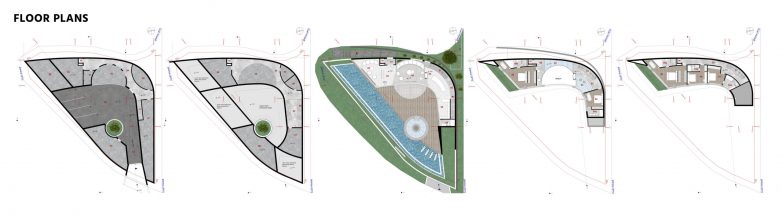 Zgrada podseća na strukturu koja izranja iz postojećeg terena i uranja u njega, stvarajući kontinuiranu „petlju“ koja grli strukturu i pruža privatnost.