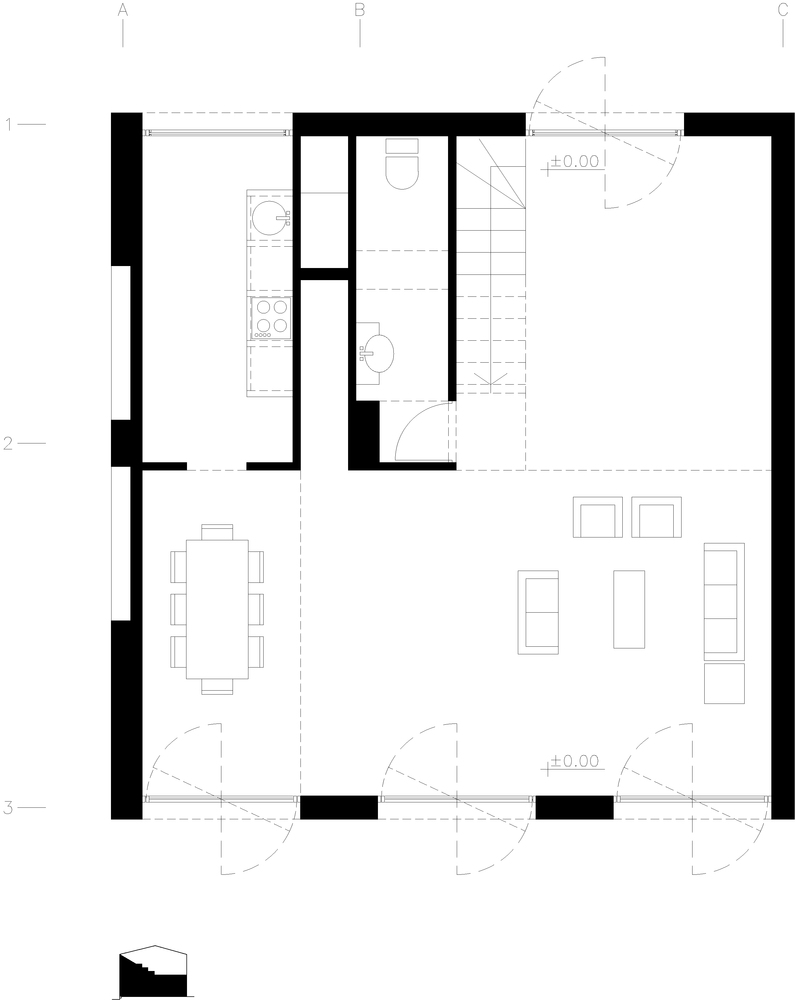 Objekat na dve etaže sačinjen je od tri međusobno povezana prostora. Na prizemlju je dnevni boravak sa kuhinjom i trpezarijom dok je na spratu smešten galerijski prostor sa toaletima. A spavaće sobe? Ne u ovoj vili se ne spava!