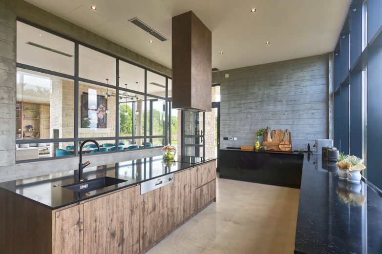Vila je kombinacija lokalnog kamena i modernih ravnih linija betona.
