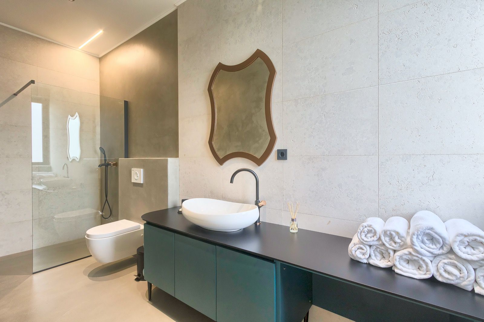U podrumu su smešteni dodatni sadržaji za hedonizam: konoba s bogatim izborom domaćih vina i hrvatskih craft piva, bilijar, teretana i sauna, sve uređeno atraktivnim dizajnerskim rešenjima. Rasvetu potpisuje Corda projekt, nameštaj je Sella Design, Team Tree i Efektiv, a tepisi su nabavljeni u Saga Saga. Sve domaće, i sve vrlo uspešne kompanije koje odlično posluju na hrvatskom, ali i inostranom tržištu.